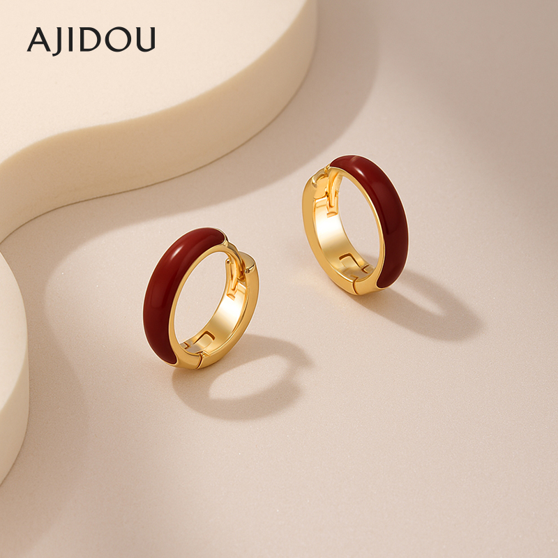 AJIDOU阿吉豆耳环女款红色耳环法式复古圈圈耳扣显白秋冬新年耳饰