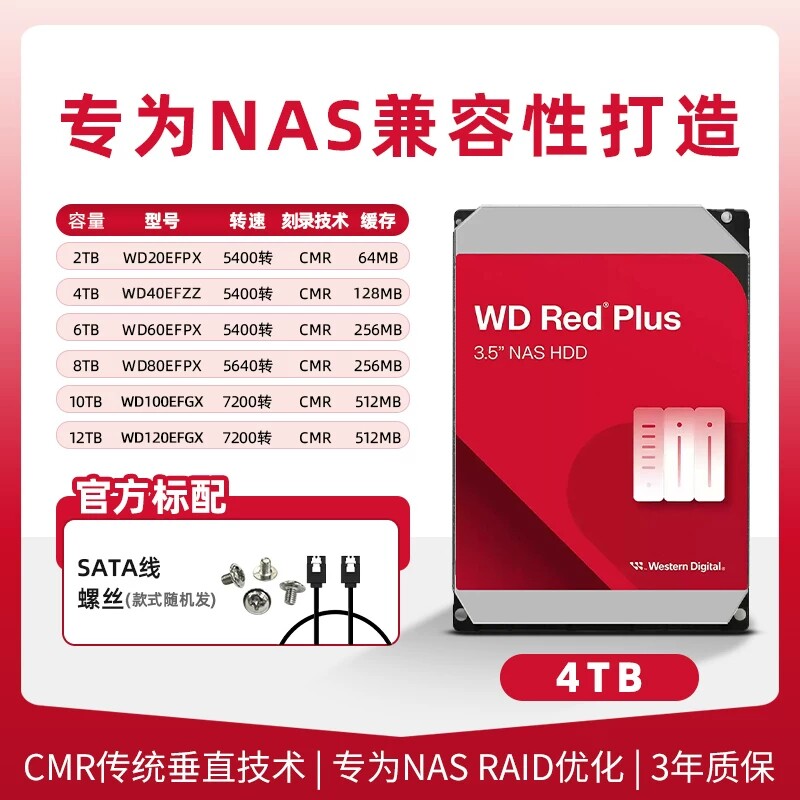 WD西部数据 4T红盘 Red Plus 网络存储NAS机械硬盘 6T 8T 10T 12T