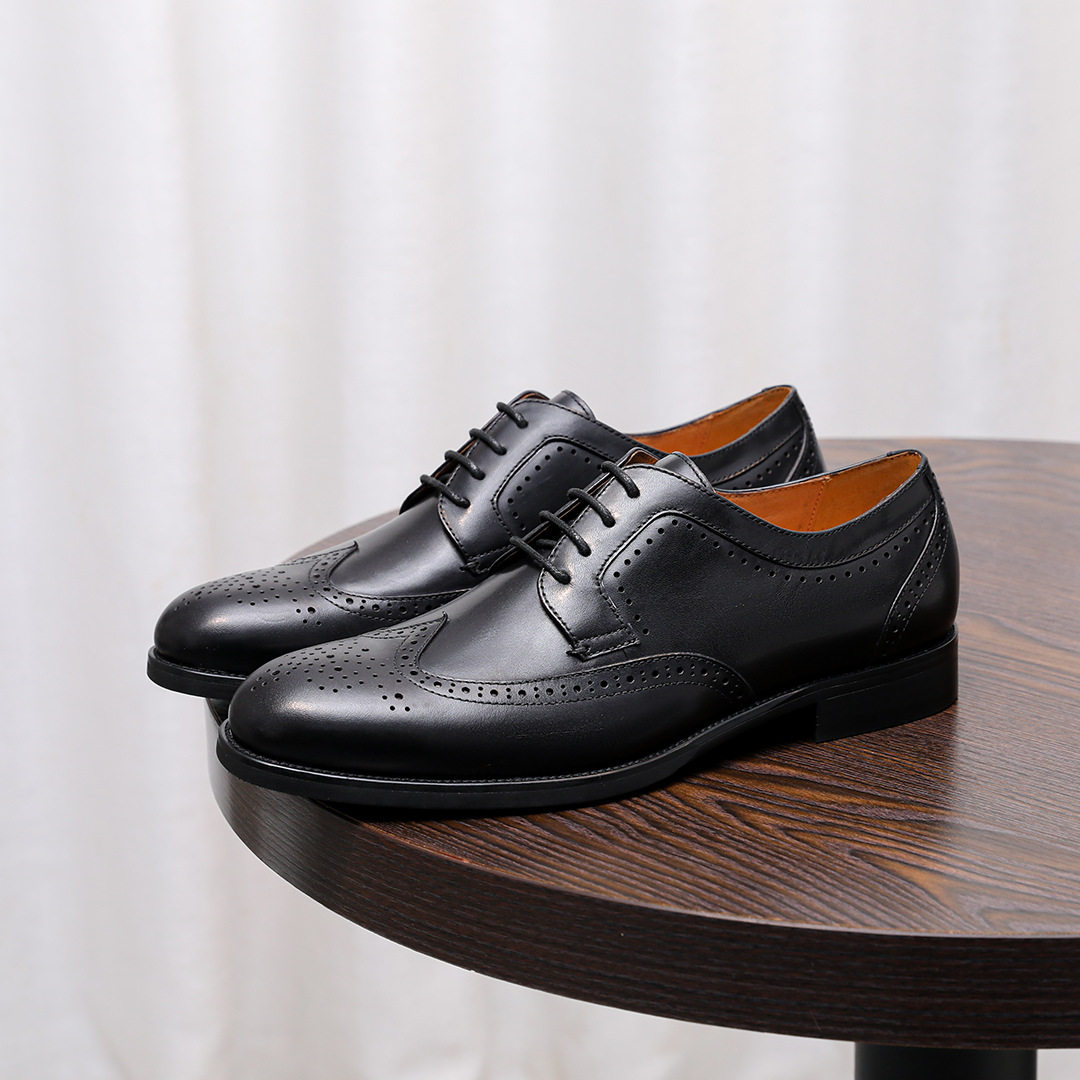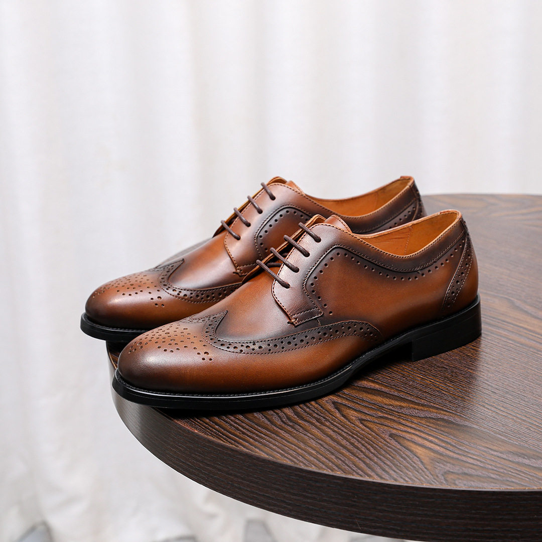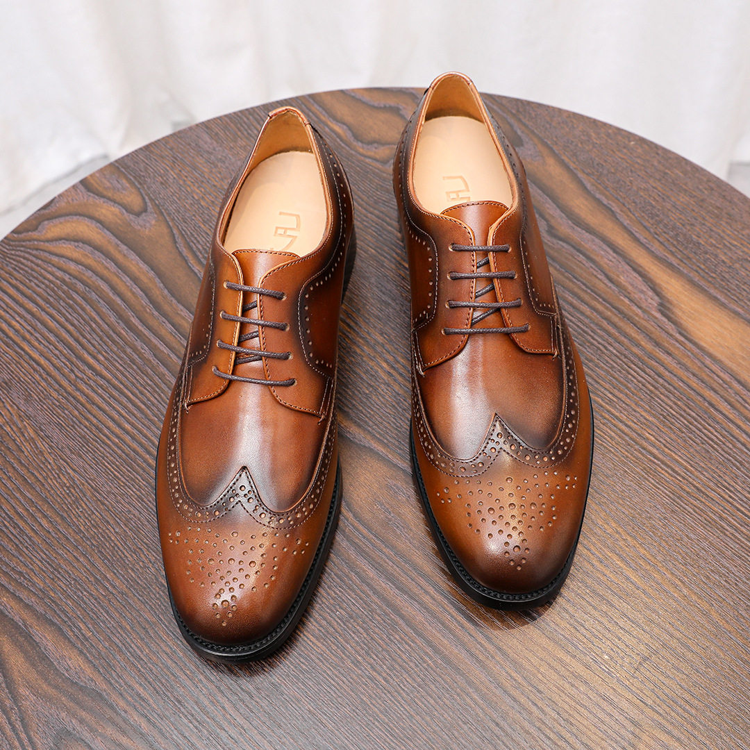 2026春新品布洛克雕花皮鞋男式头层牛皮手工系带英伦商务风德比鞋