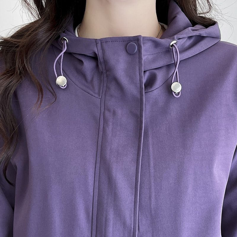 大码风衣外套女胖mm春秋2024新款200斤韩版宽松拉链口袋连帽上衣