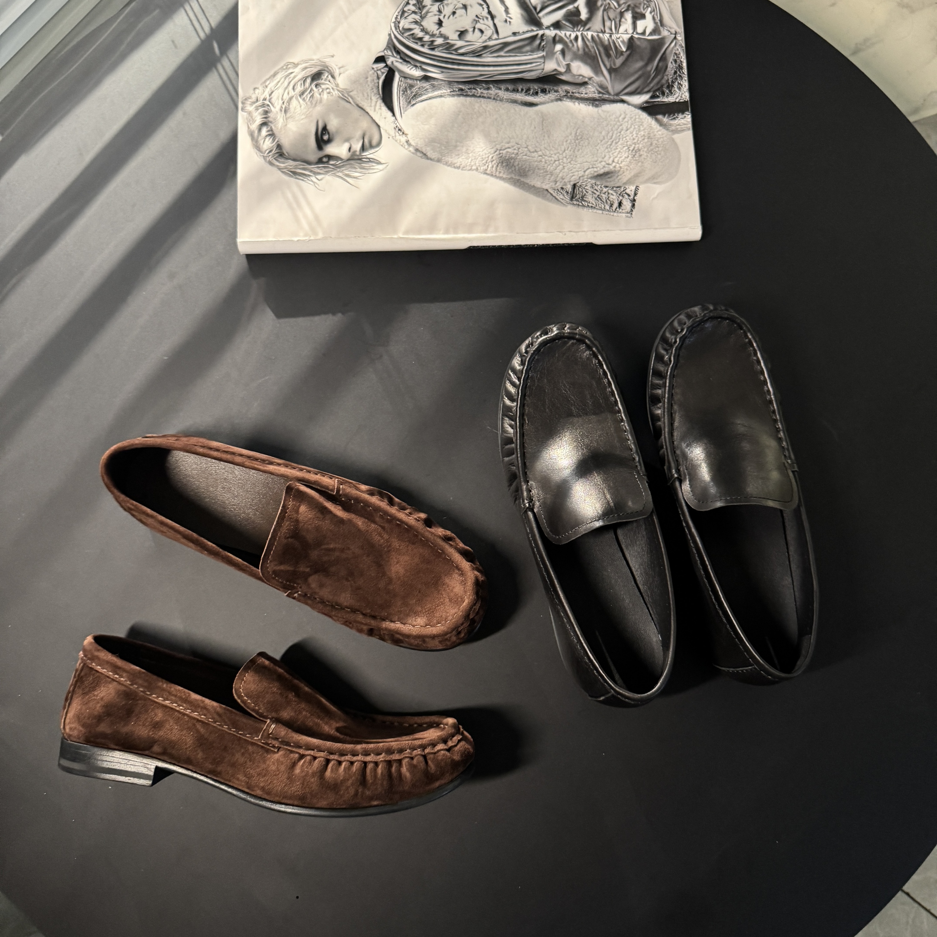 【安琪儿专属】2025秋季新款手工抓褶一脚蹬懒人乐福鞋老钱风舒适