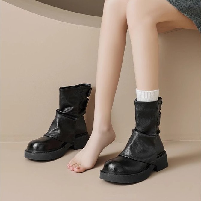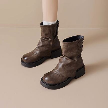 棕色厚底增高马丁靴女2025秋季新款时尚显瘦英伦风裤管靴气质短靴