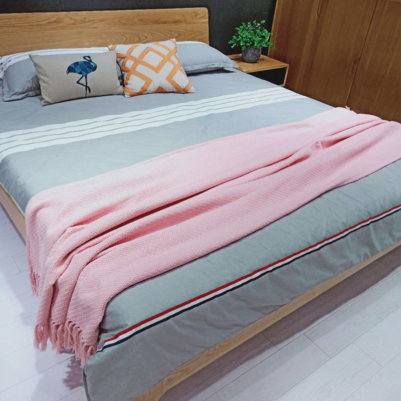 简约现代样板房间灰色针织搭毯A流苏搭巾沙发床尾毯酒店橘色床盖