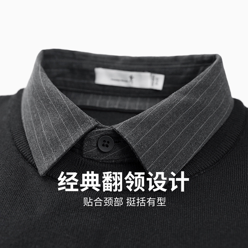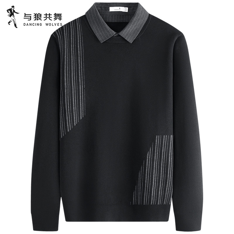 【条纹提花】与狼共舞假两件羊毛衫男2025秋冬新款保暖衬衫领毛衣