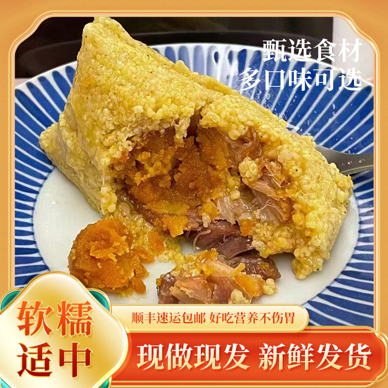 温州口味小米粽子大黄米蛋黄鲜肉端午节蜜枣豆沙快速早餐