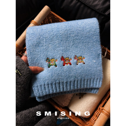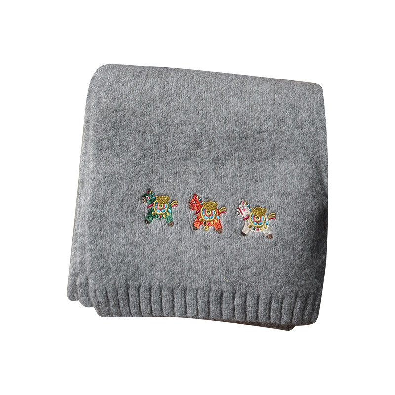 复古元宝彩色小马刺绣针织围巾