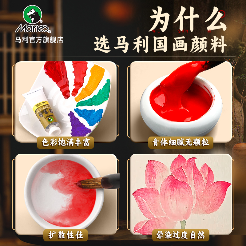 马利牌国画颜料初学者工具套装官方旗舰店马利中国画12色24色水墨画用品全套材料儿童小学生入门水彩马力玛丽