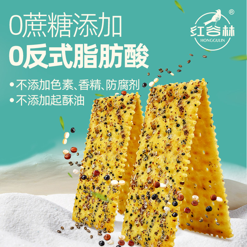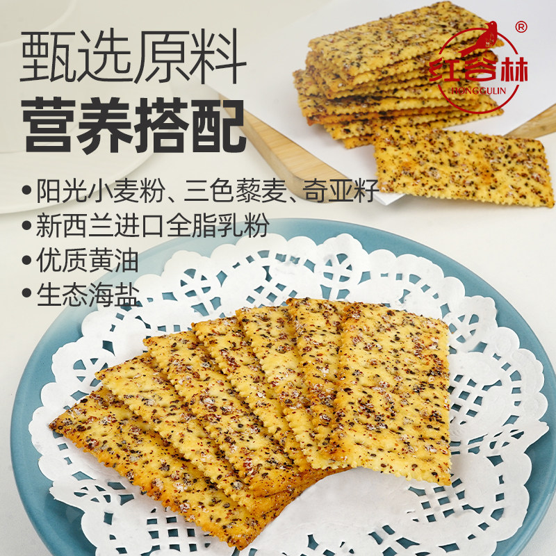 红谷林奇亚籽三色藜麦苏打发酵饼干高膳食纤维0添加蔗糖网红零食