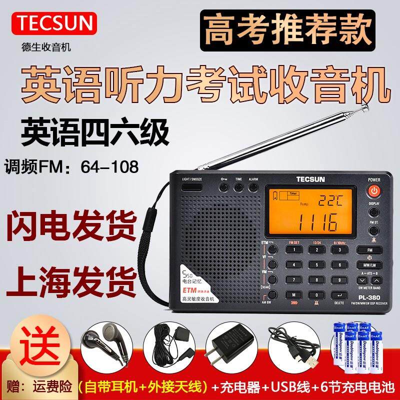 德生 PL-380英语听力四六级学生用校园广播高考考试fm调频收音机