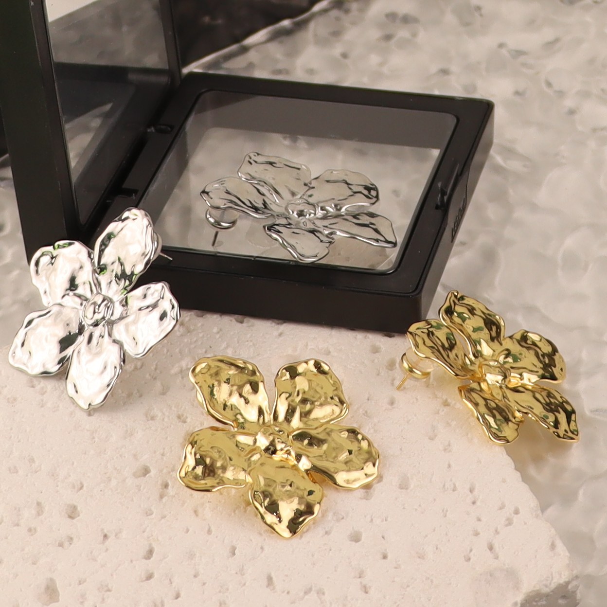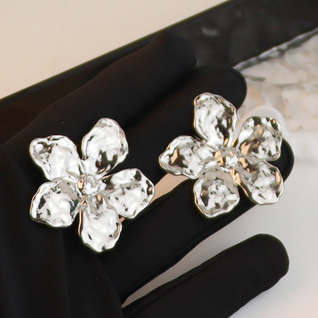 花瓣耳饰冷淡风不规则立体大花朵耳钉春夏款高级感金银双色耳环女