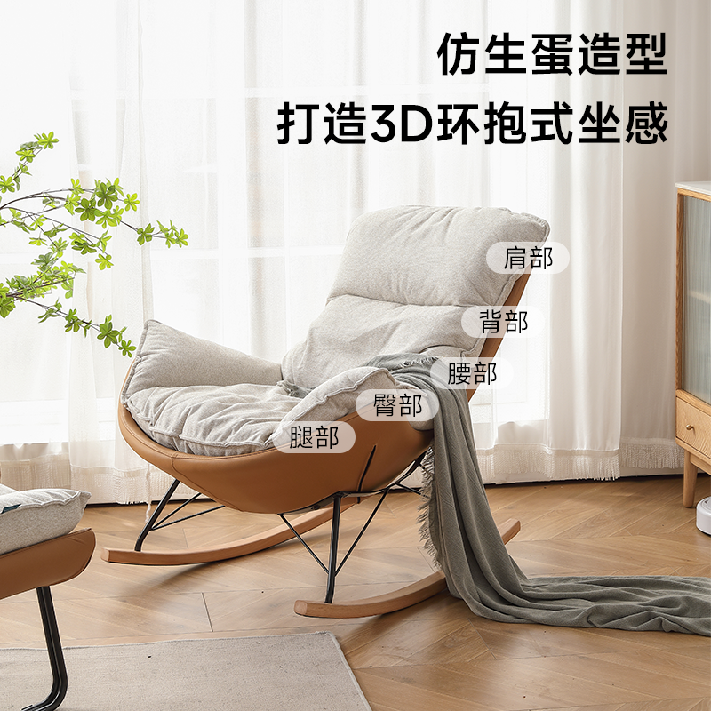 布艺蛋壳椅摇摇椅现代简约阳台单人躺椅客厅懒人椅家用沙发椅休闲