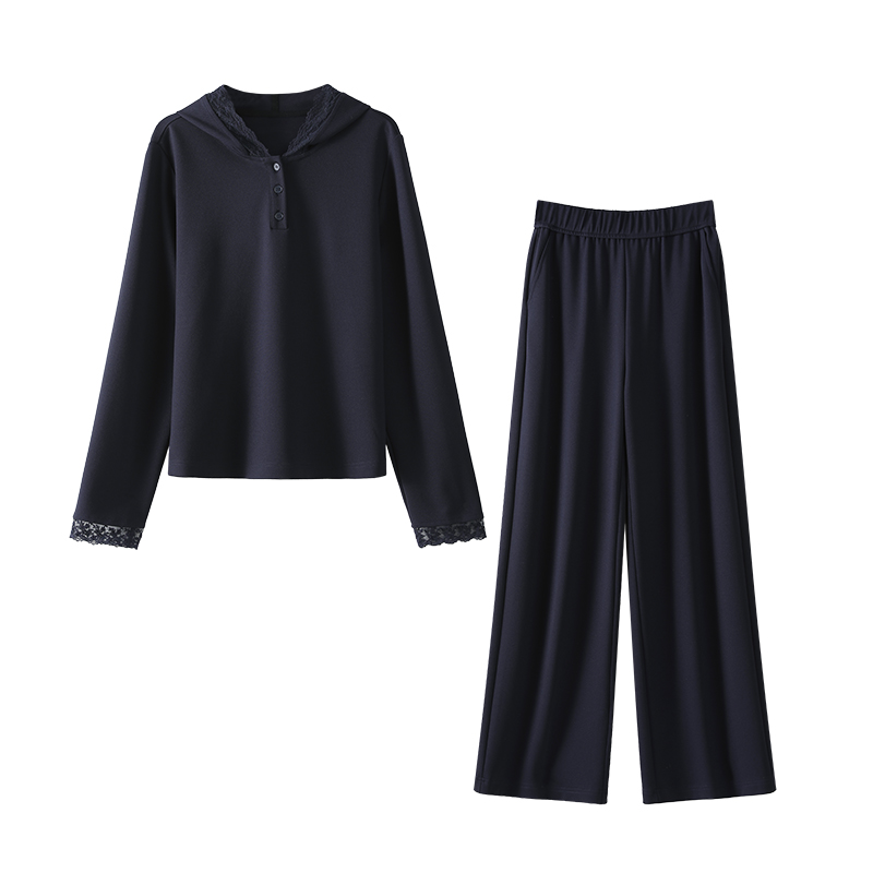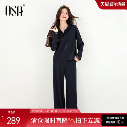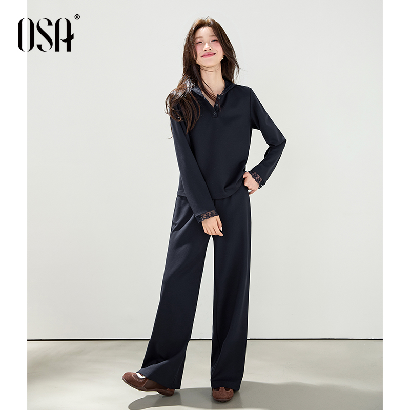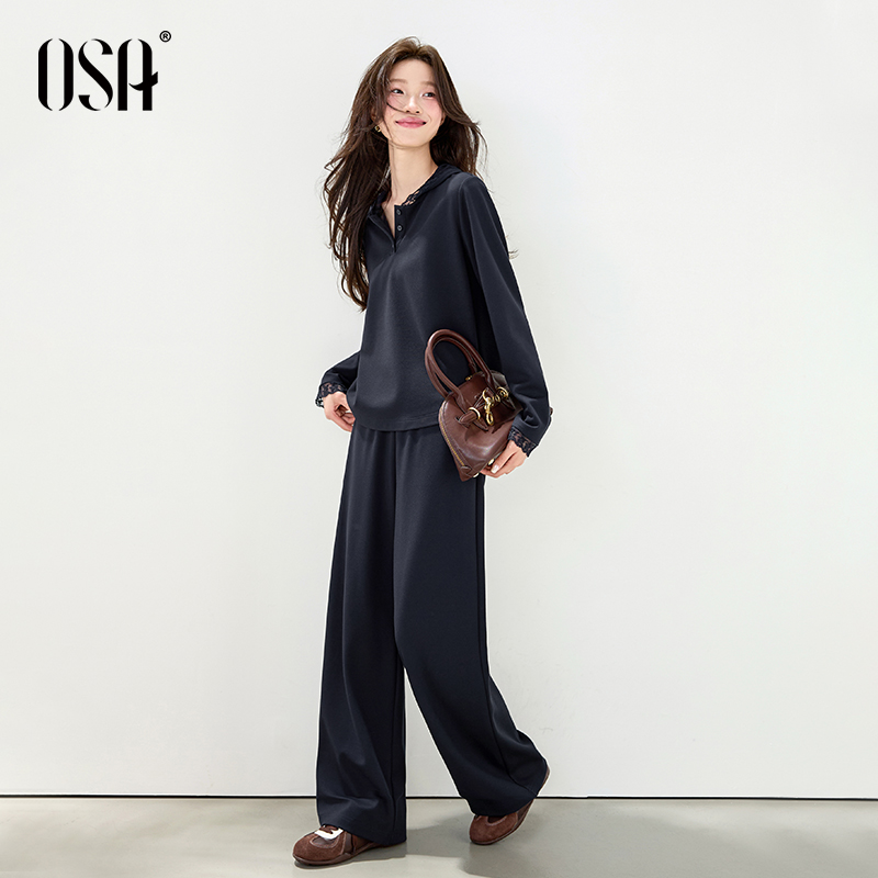 OSA欧莎松弛感蕾丝花边连帽套装女秋季新款休闲上衣阔腿裤两件套