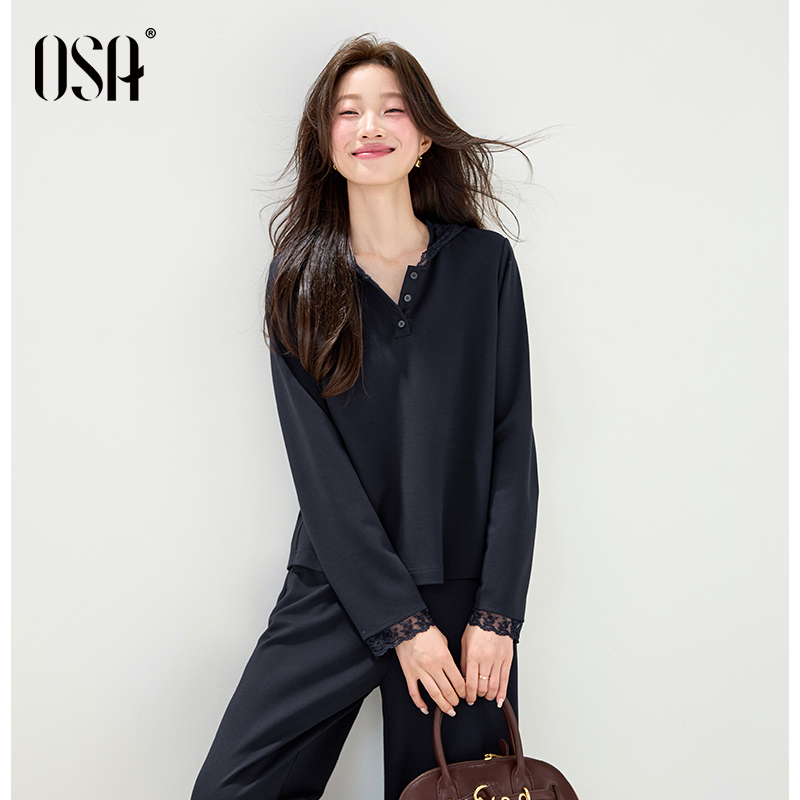 OSA松弛感蕾丝花边连帽套装