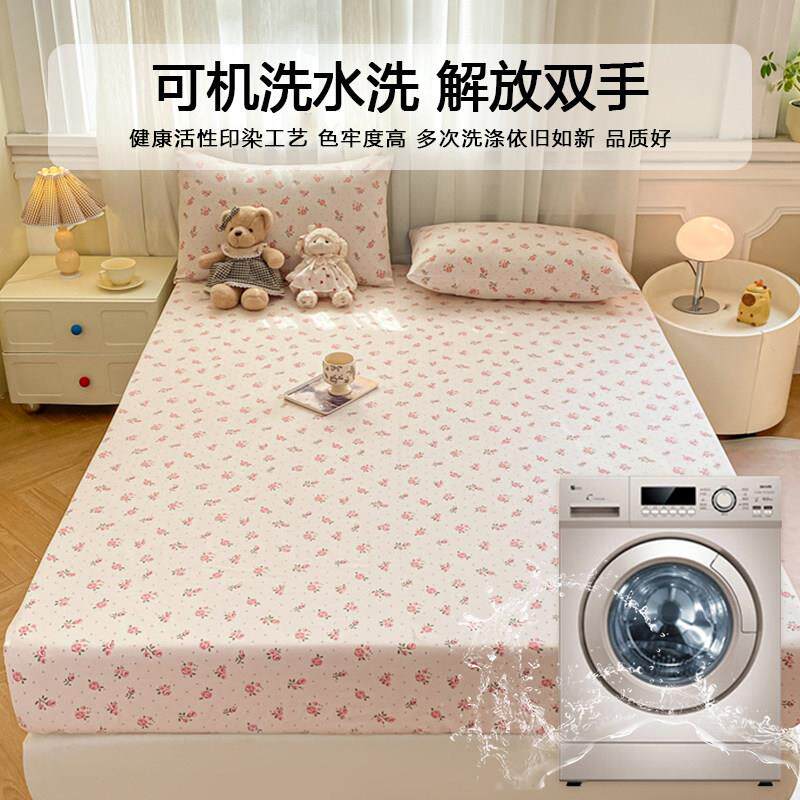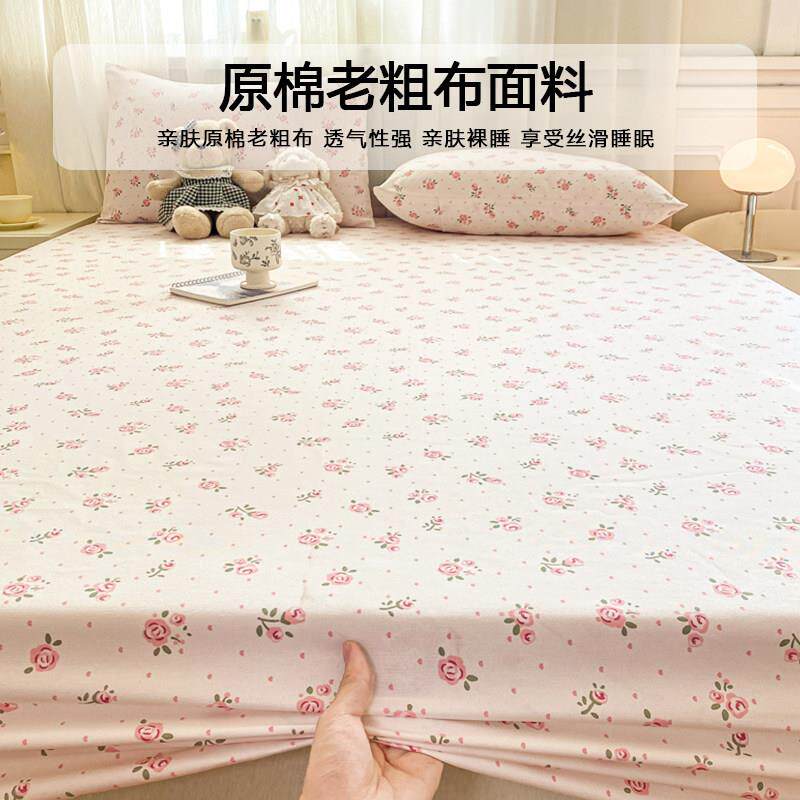 原棉老粗布印花床笠三件套2025新款床罩宿舍单人床垫保护套防尘罩