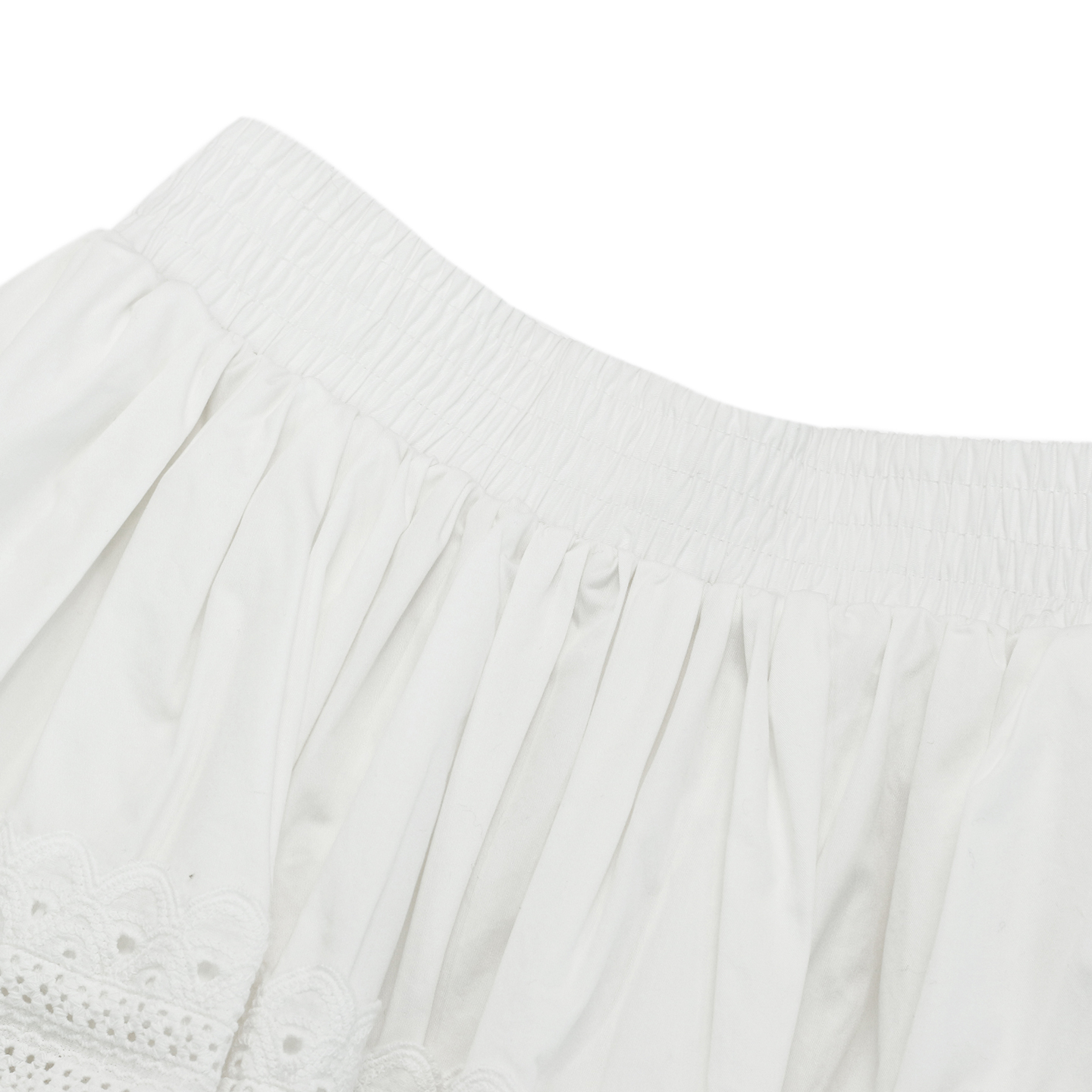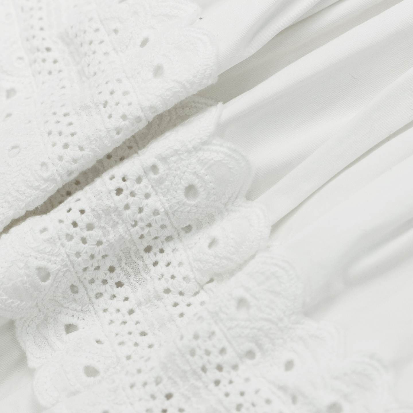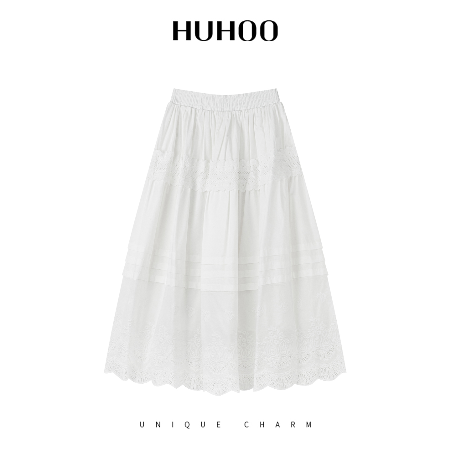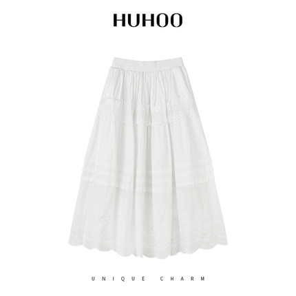 呼呼huhoo 比马棉亚麻蕾丝半身裙绣花波浪裙摆镂空复古浪漫长裙