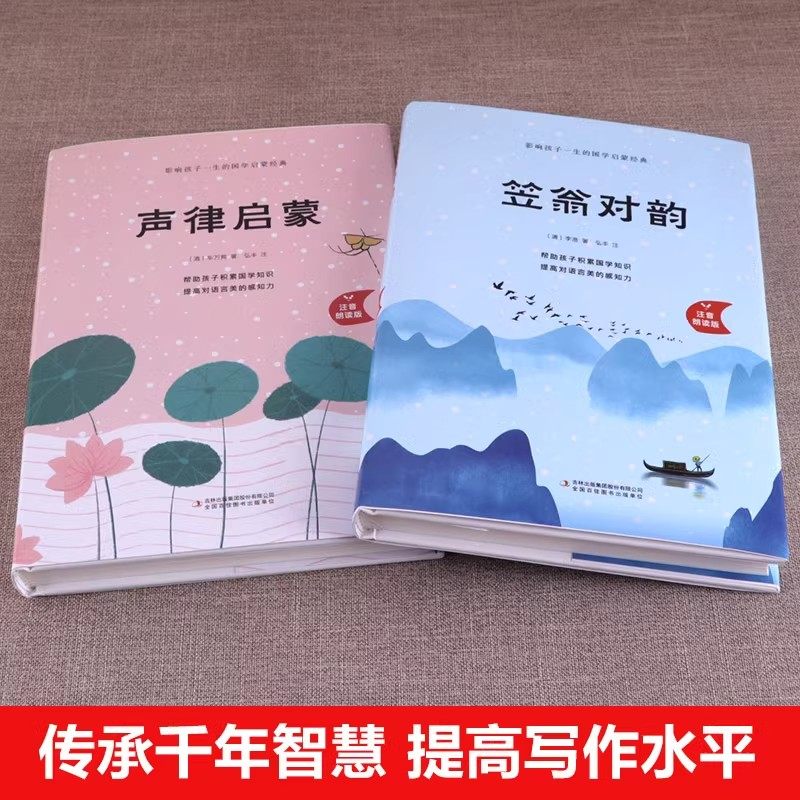 【全套2册】 声律启蒙与笠翁对韵精装完整版大字美绘注音版幼儿经典国学启蒙小学生6-7-10岁小学生一年级上册二三年级课外阅读书籍