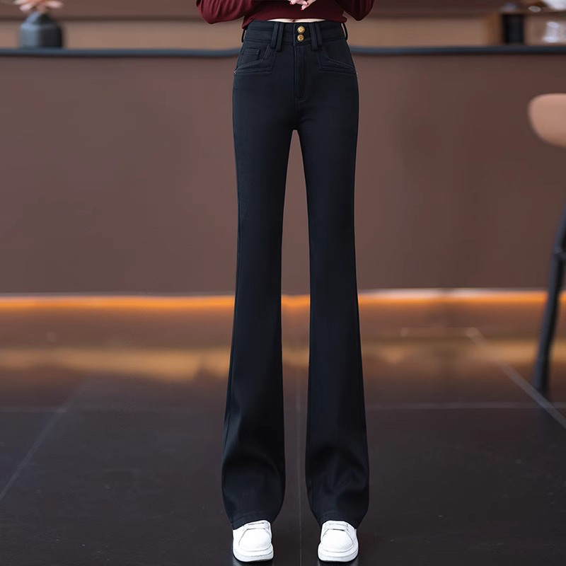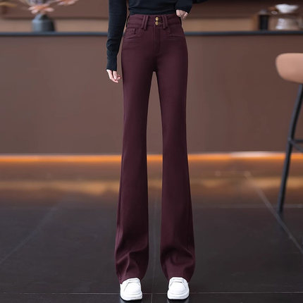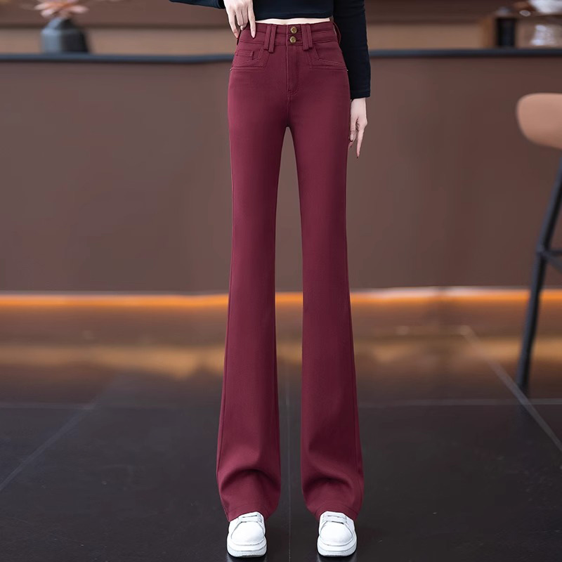 安可拉红高腰微喇叭裤女2025秋季大码通勤直筒牛仔裤复古修身