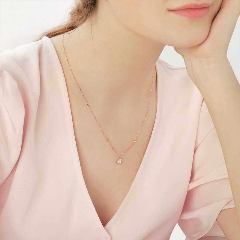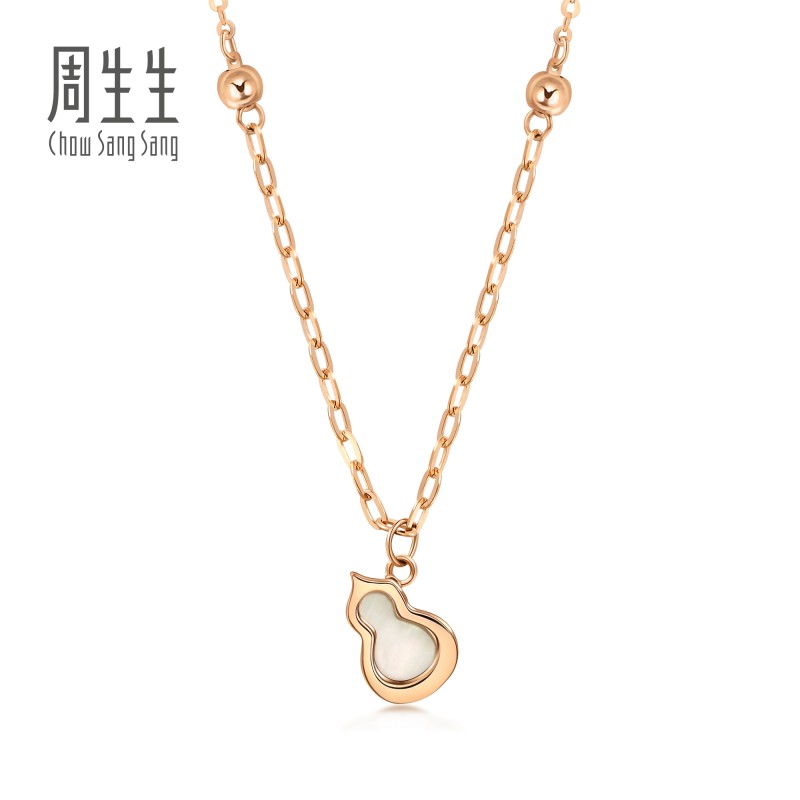 周生生18K金项链女玫瑰金贝母葫芦项链颈链女92734N