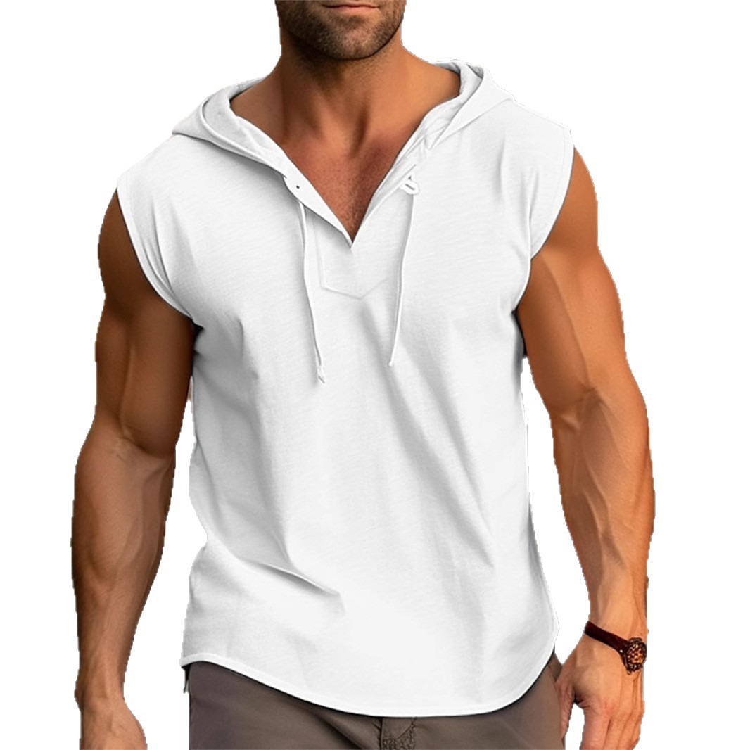 美式健身运动背心2025夏季新品纯色连帽抽绳无袖休闲宽松背心男士