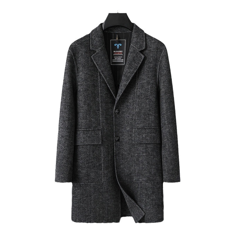 胖佬2025秋冬新款男加肥加大码中长款双面呢大衣西装领休闲风衣