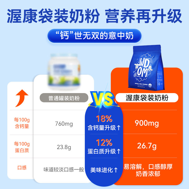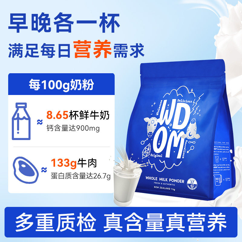 WDOM渥康新西兰进口全脂奶粉中老年儿童学生高钙高蛋白1kg牛奶粉