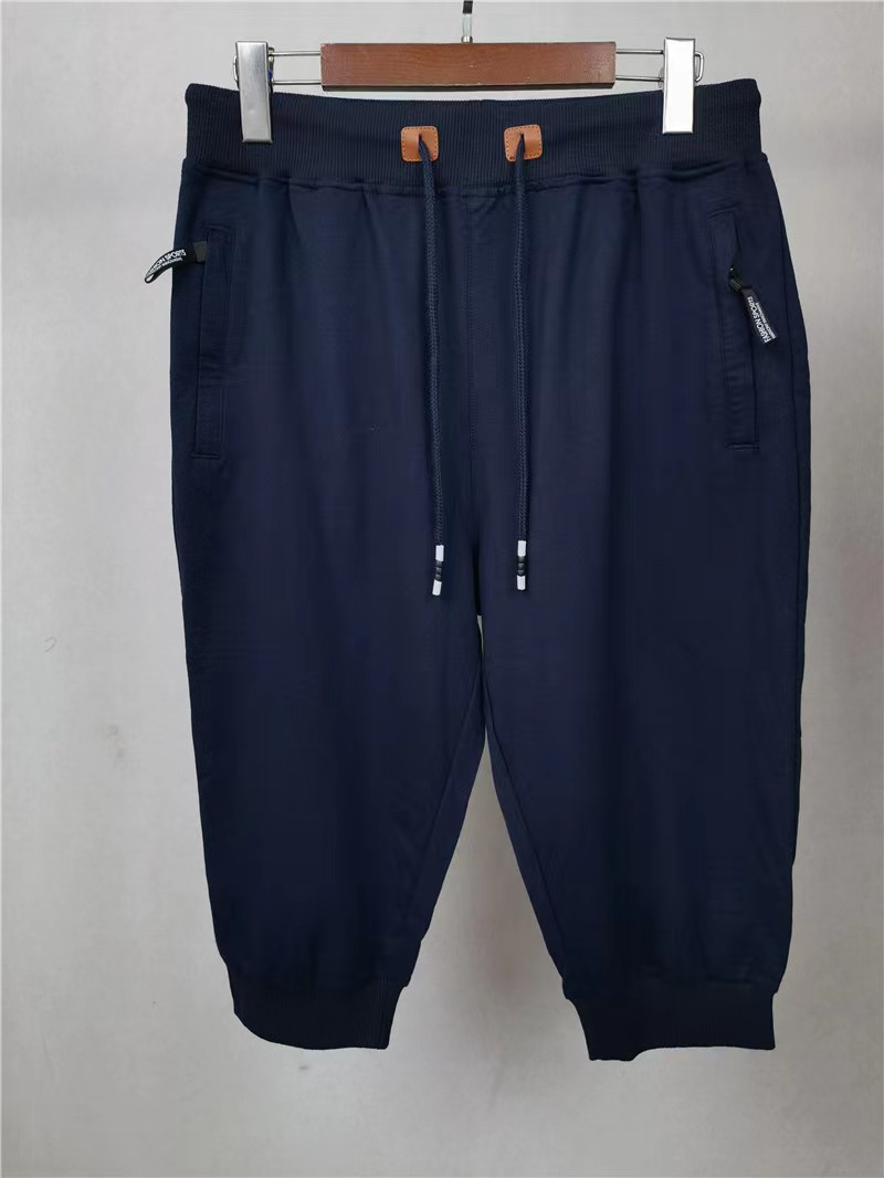 外贸男士夏季薄款户外运动毛圈七分裤宽松大码弹力马裤小脚裤卫裤