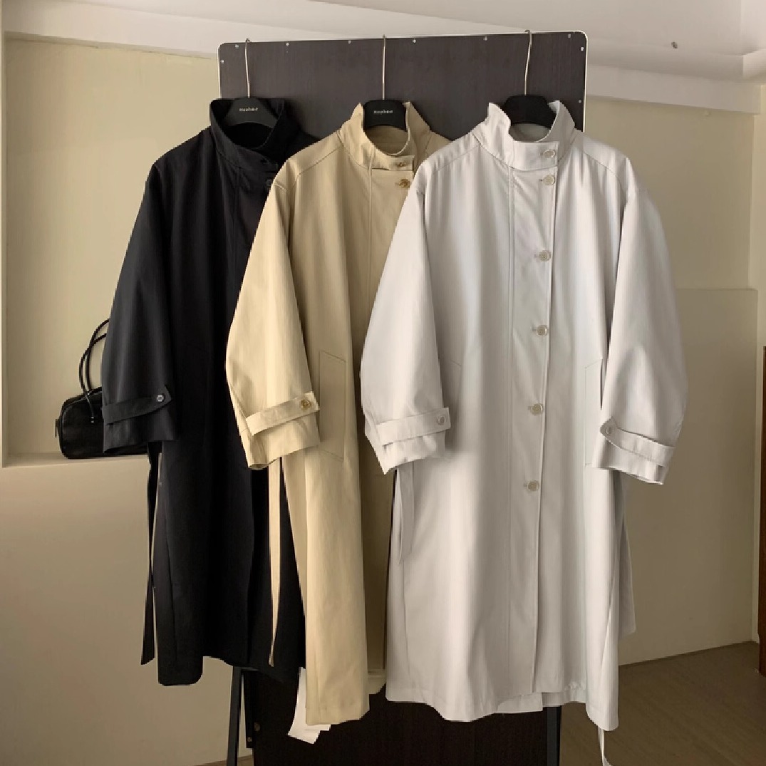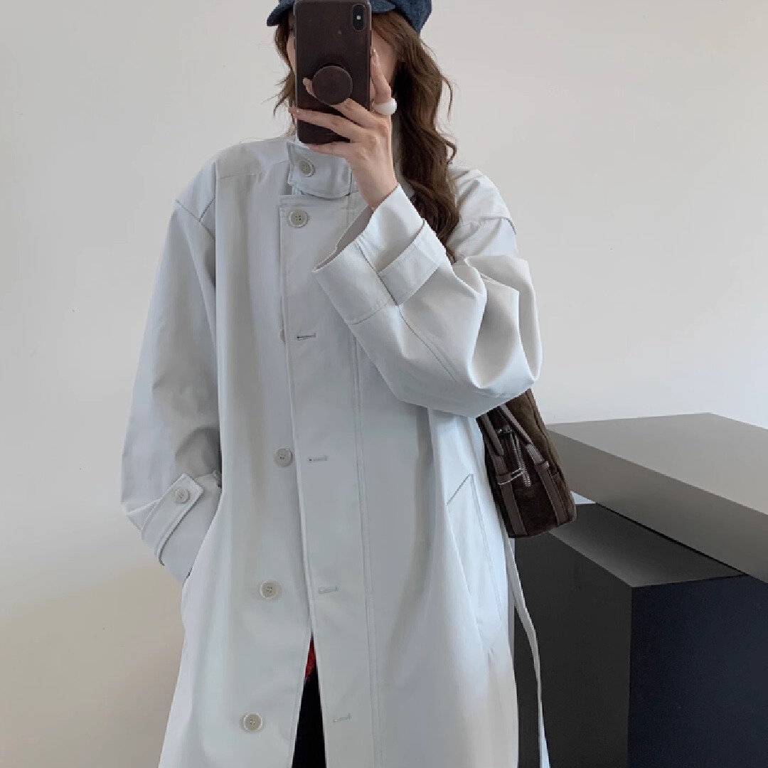 韩系卡其色风衣女秋季新款宽松显瘦中长款过膝气质大衣外套 9173