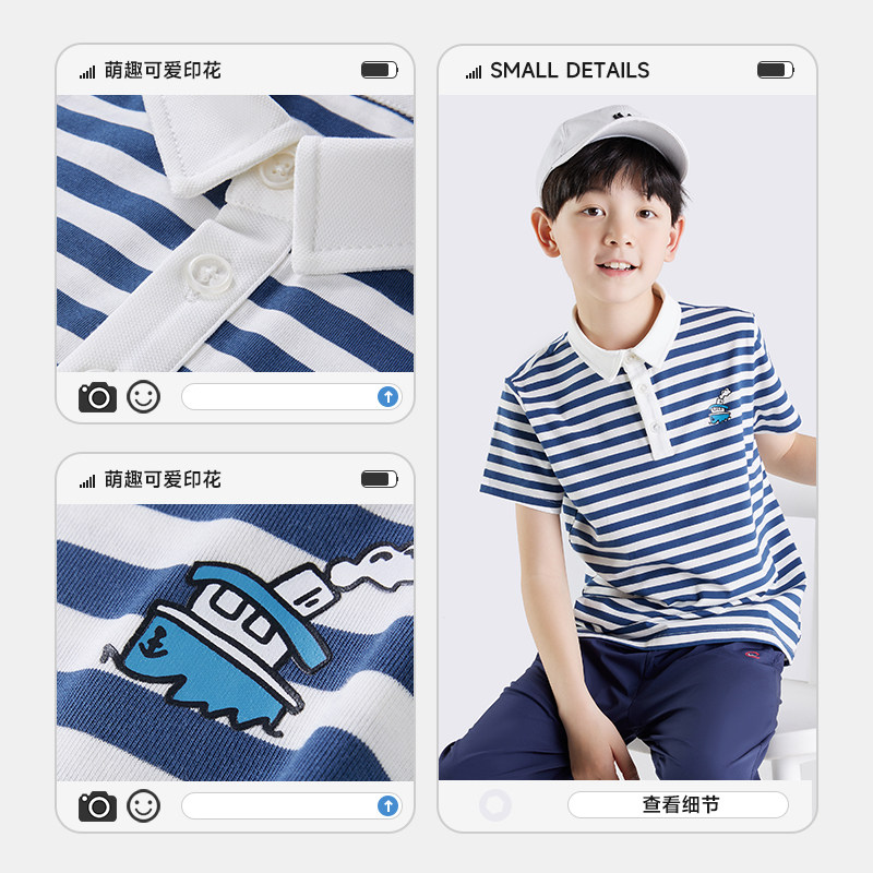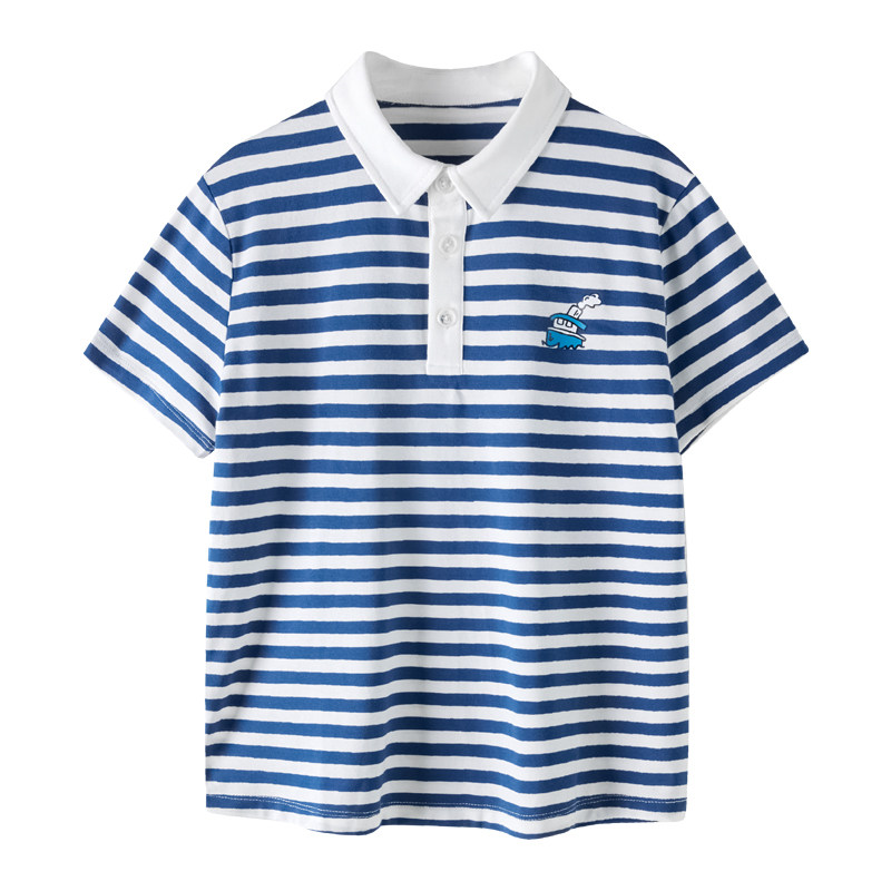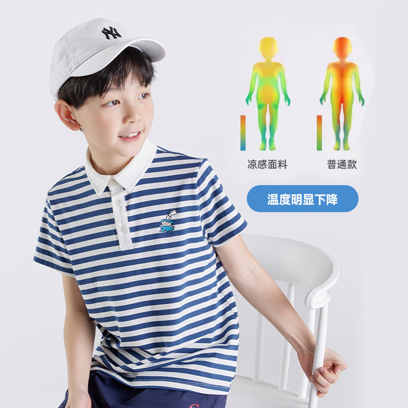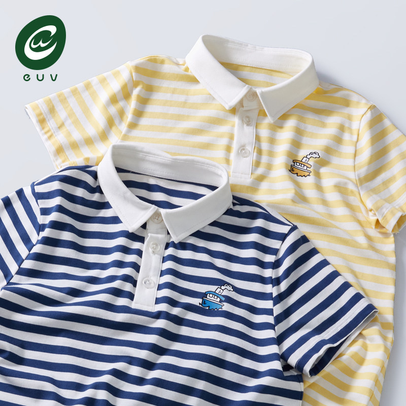 euv 儿童短袖polo衫男童条纹t恤中大童女童莫代尔棉翻领夏季上衣