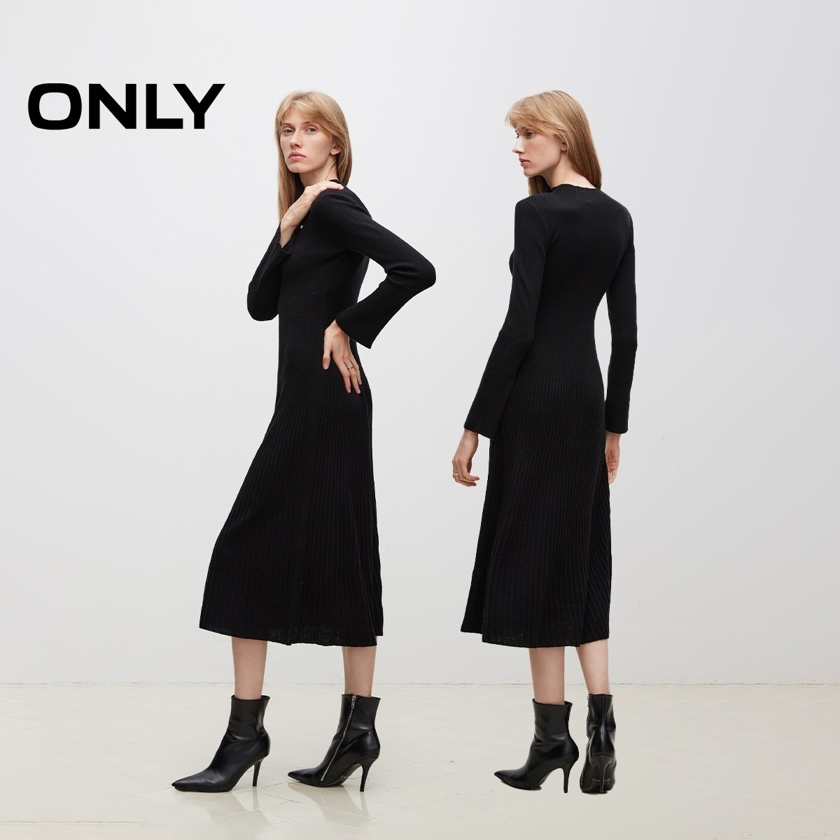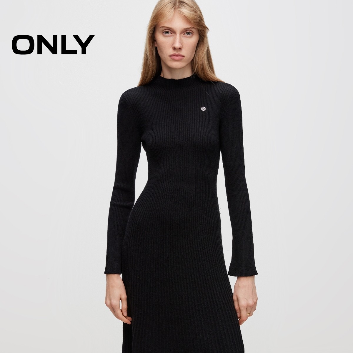 【ONLY奥莱】秋冬含羊毛半高领修身针织鱼尾裙连衣裙女