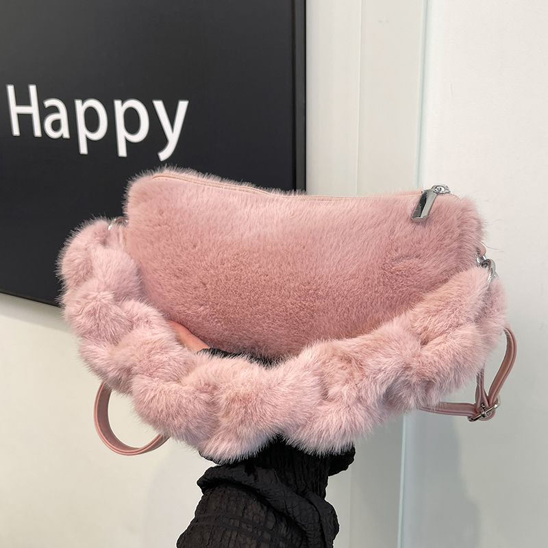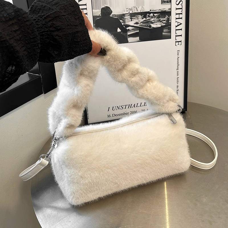 ins秋冬可爱毛绒绒高级高级感手提小方包百搭单肩斜挎小包包
