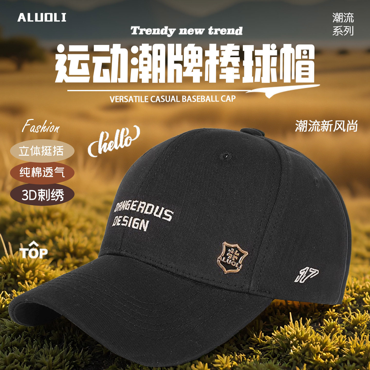 阿萝璃鸭舌帽逛街潮流春秋刺绣