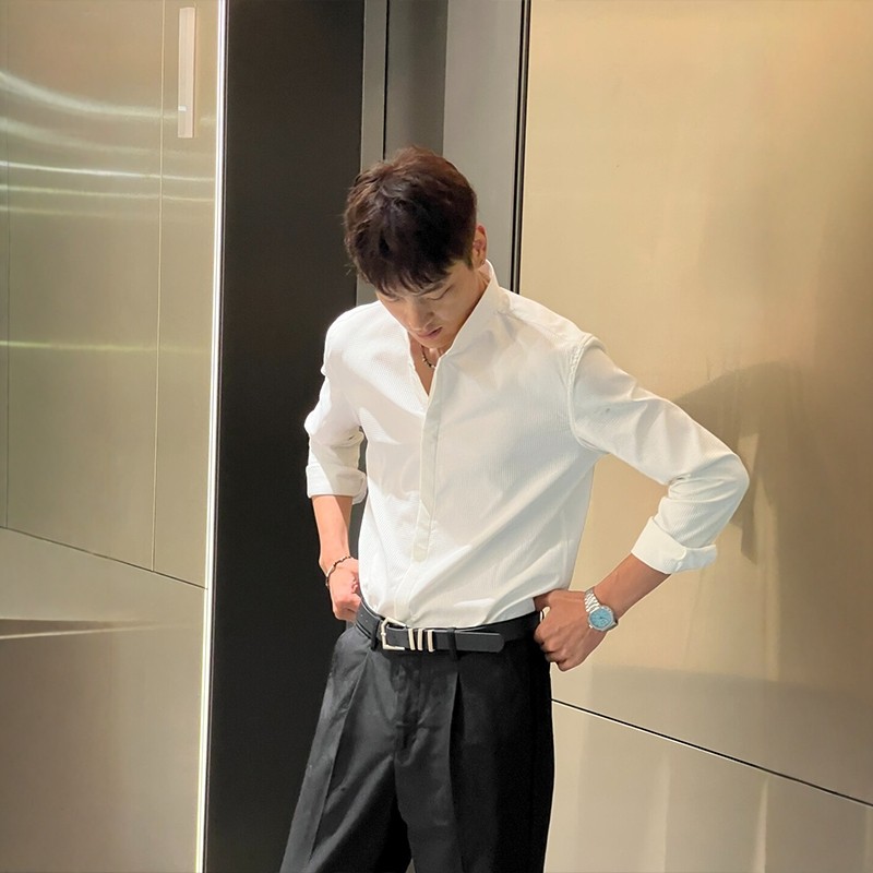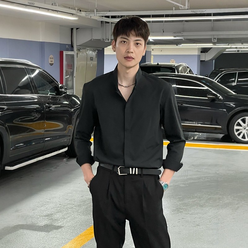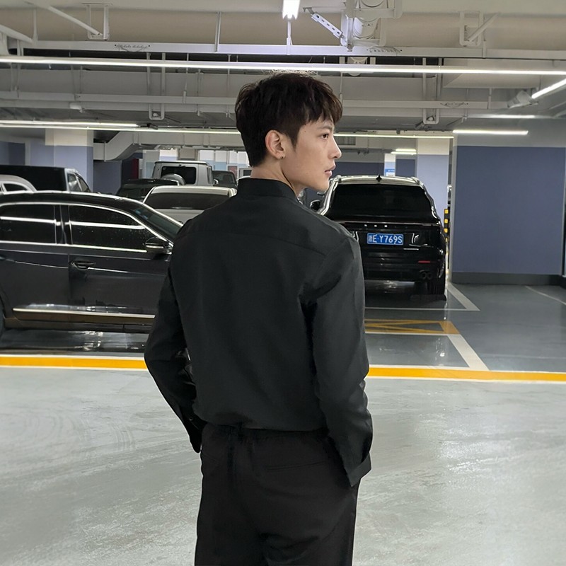 高端白色长袖衬衫男款春秋2025年新款潮牌立领休闲新中式男士上衣