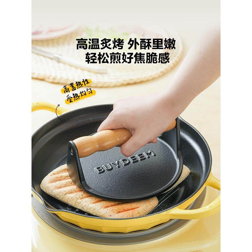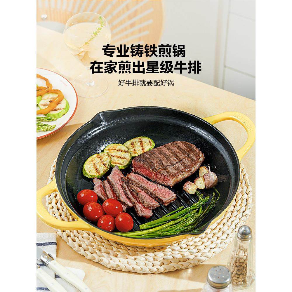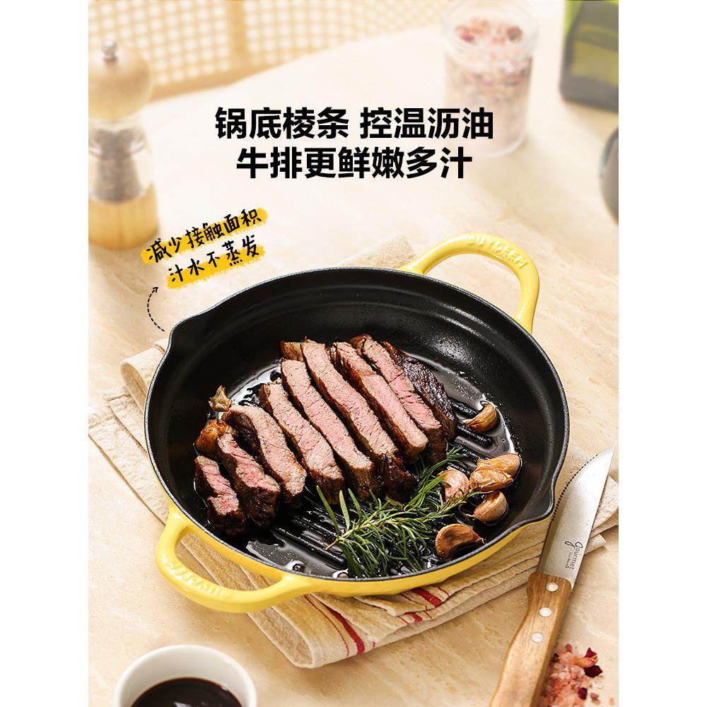 北鼎专业铸铁煎牛排专用双耳煎锅26cm条纹黑珐琅不粘烤肉烤盘家用