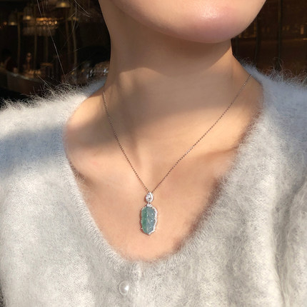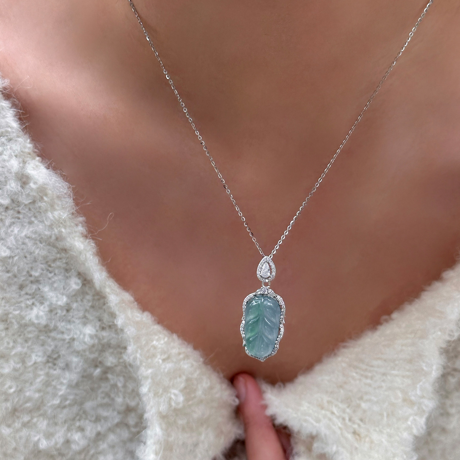 MISS HELEN叶子天然A货翡翠S925银新中式项链吊坠叶子玉石颈链