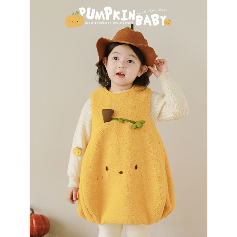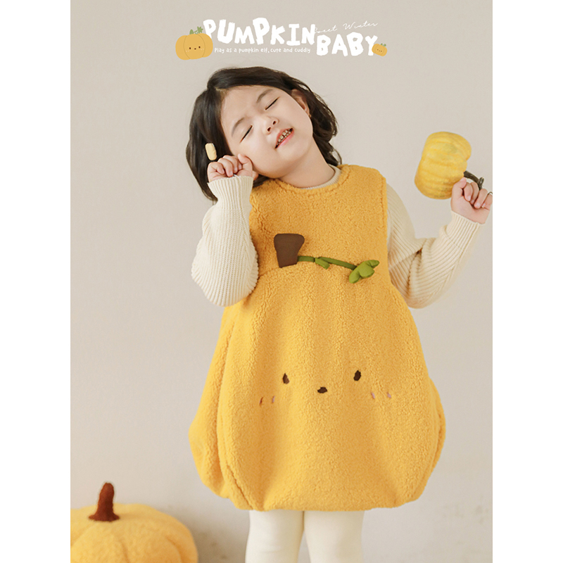 幼悠女童南瓜毛绒花苞背心裙2025冬季甜美可爱玩偶刺绣保暖连衣裙