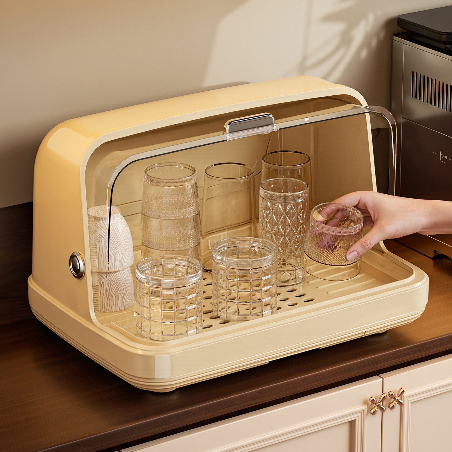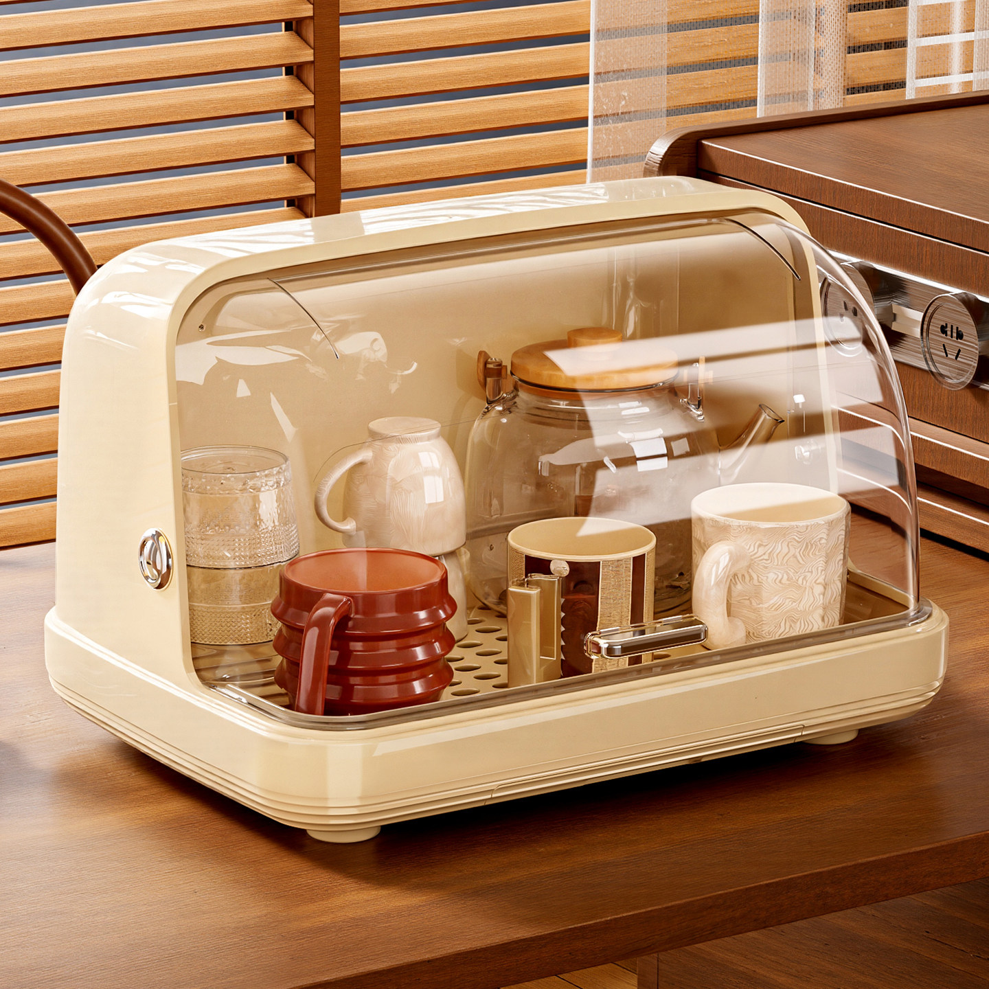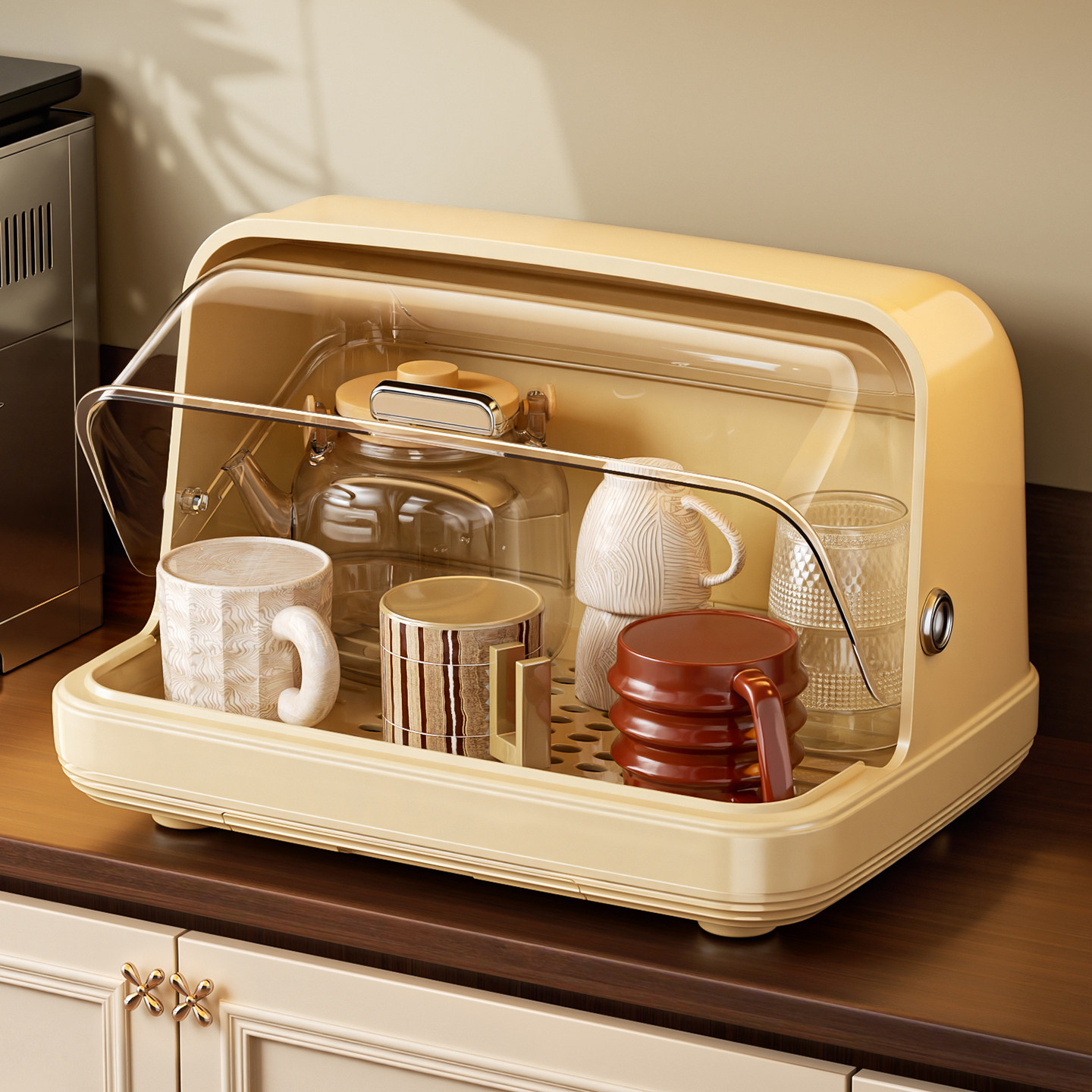 杯子收纳置物架桌面防尘水杯收纳盒厨房餐桌茶杯玻璃杯托盘沥水架