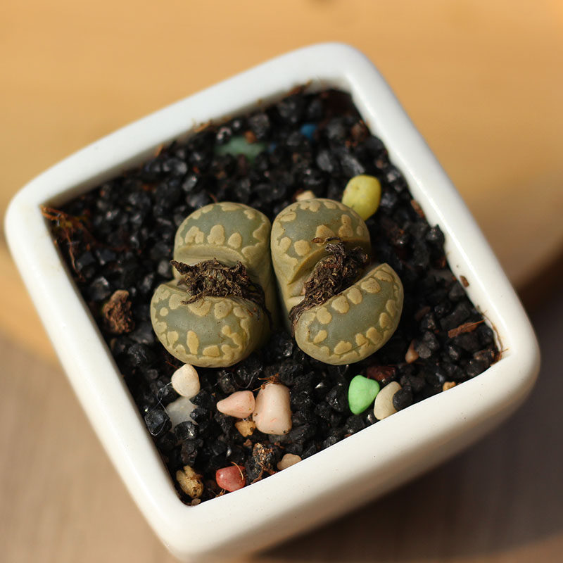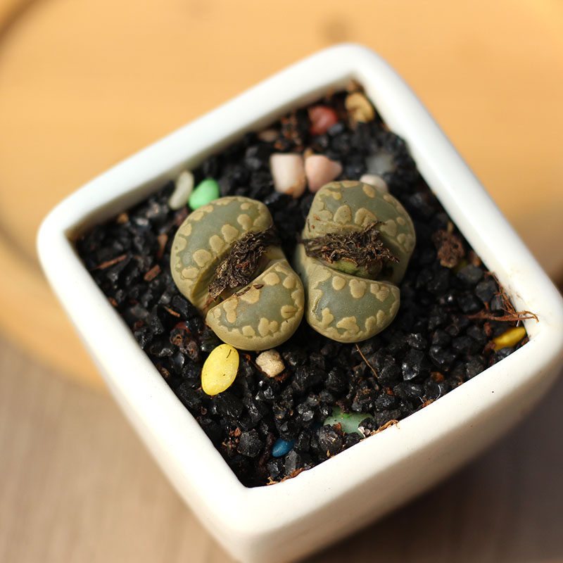 生石花纯编号双头母本开花株彩色优选矮胖带盆颜色不重复大津绘