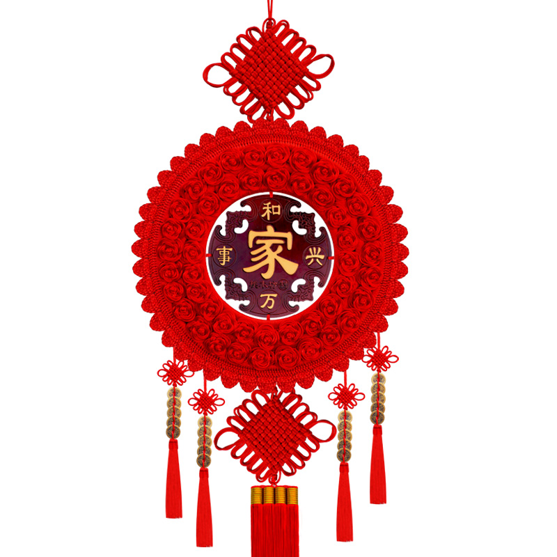 圆形中国结挂件客厅大号入户门桃木福字挂饰乔迁新居春节过年