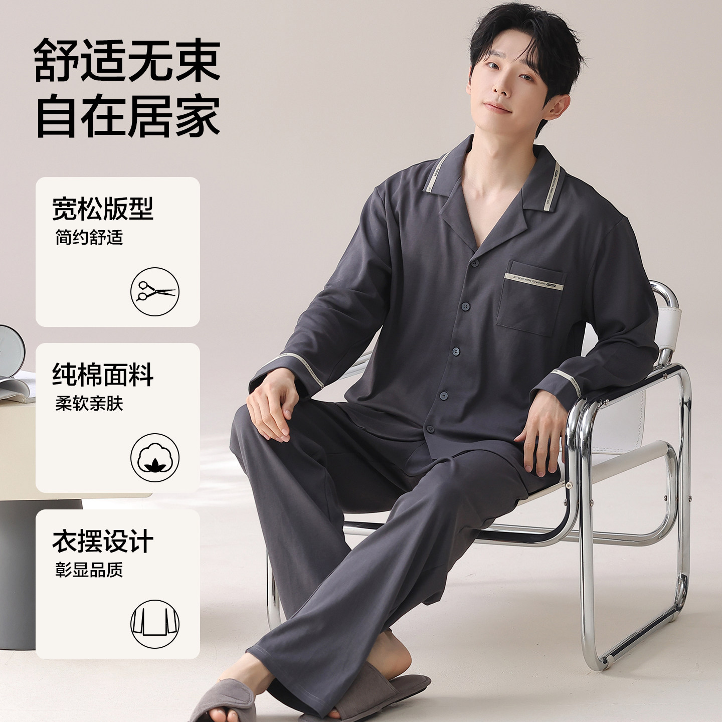 南极人男士睡衣纯棉春夏季长袖2026新款简约可外穿男生家居服套装