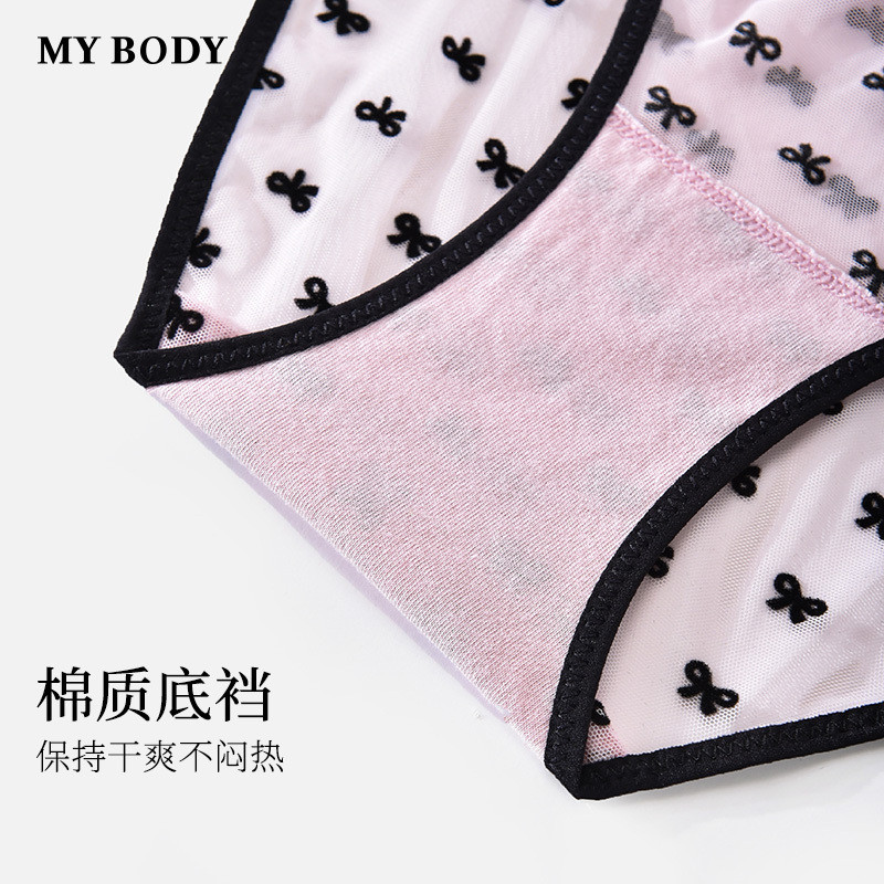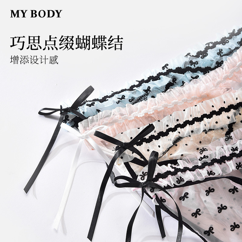 3件129|商场同款MYBODY新款内裤女复古波点浪漫蕾丝蝴蝶结三角裤