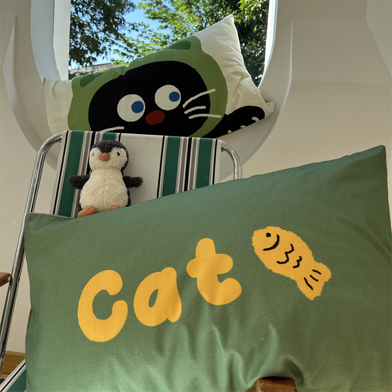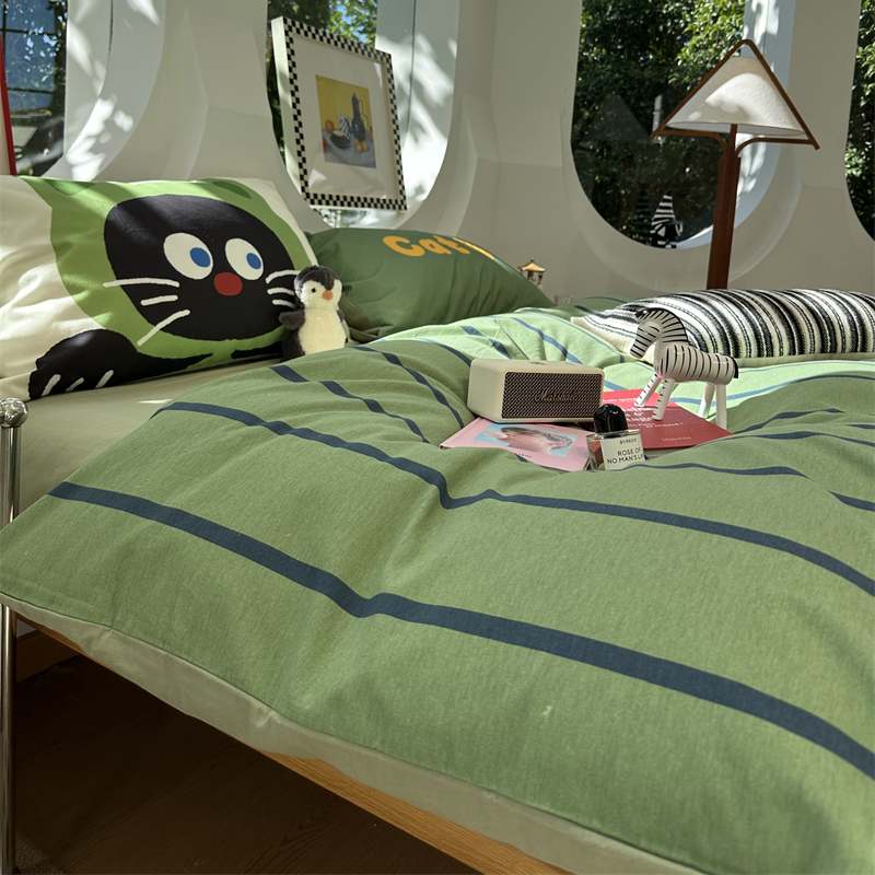 ins卡通怪怪猫磨毛毛巾绣床上四件套全棉纯棉被套秋冬1.5m1.8米三