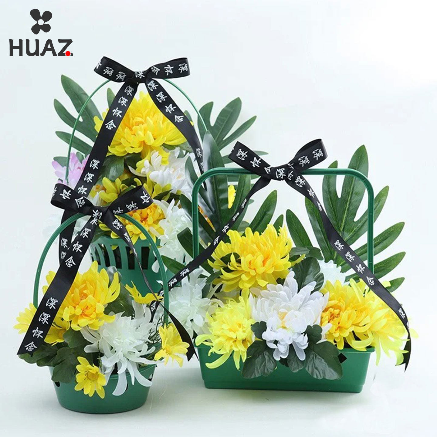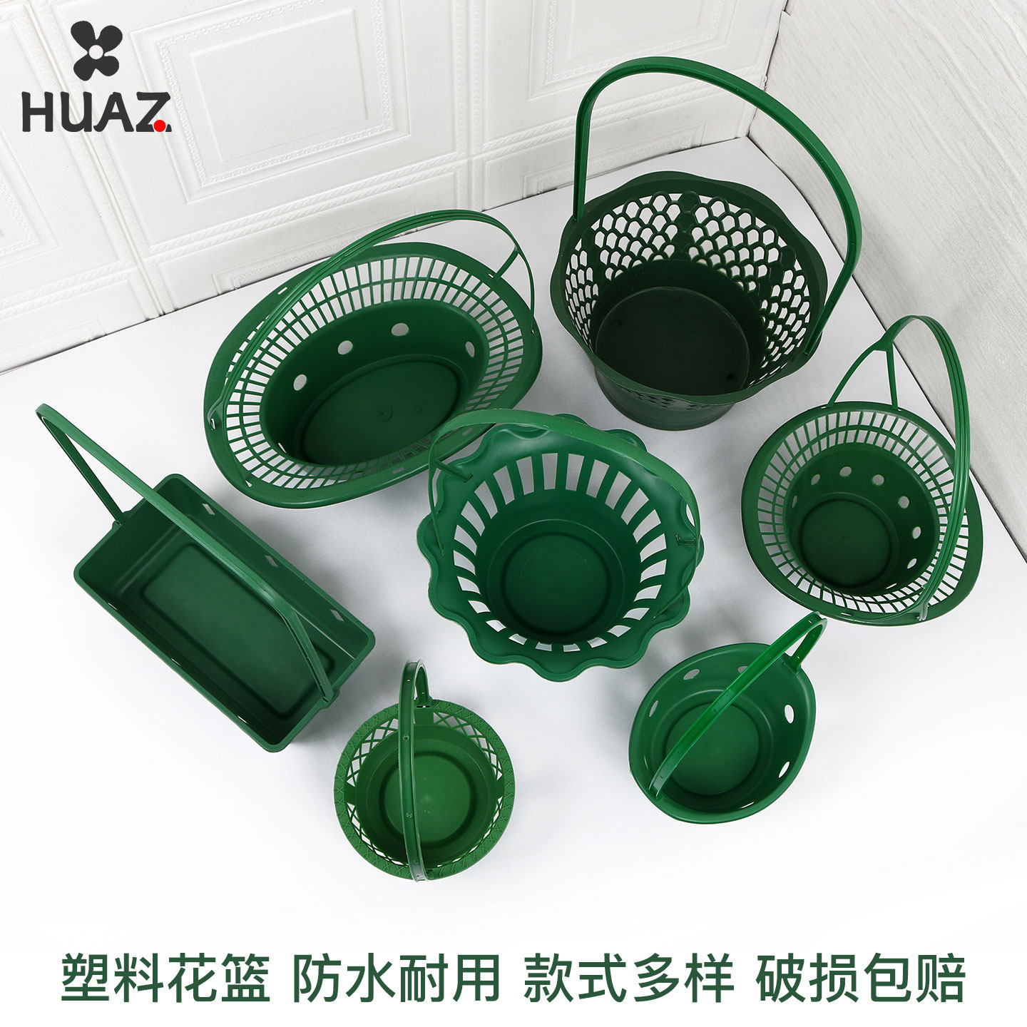 祭奠花篮祭祀手提篮菊花鲜花塑料小花篮提篮上坟绿色篮子清明节