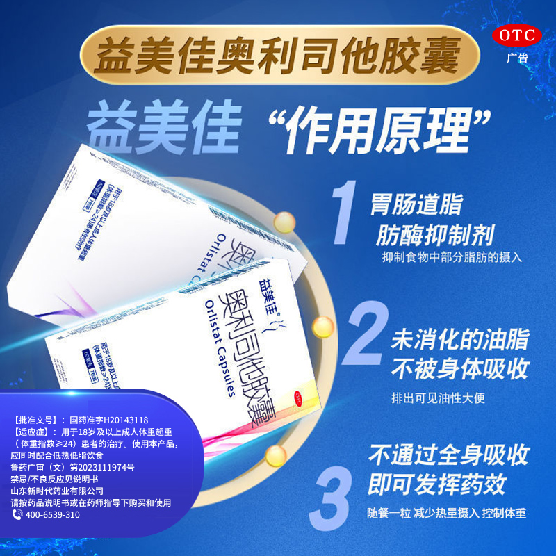 益美佳奥利司他胶囊正品排油丸瘦身瘦腰腿肥胖排油减脂减肥药60mg