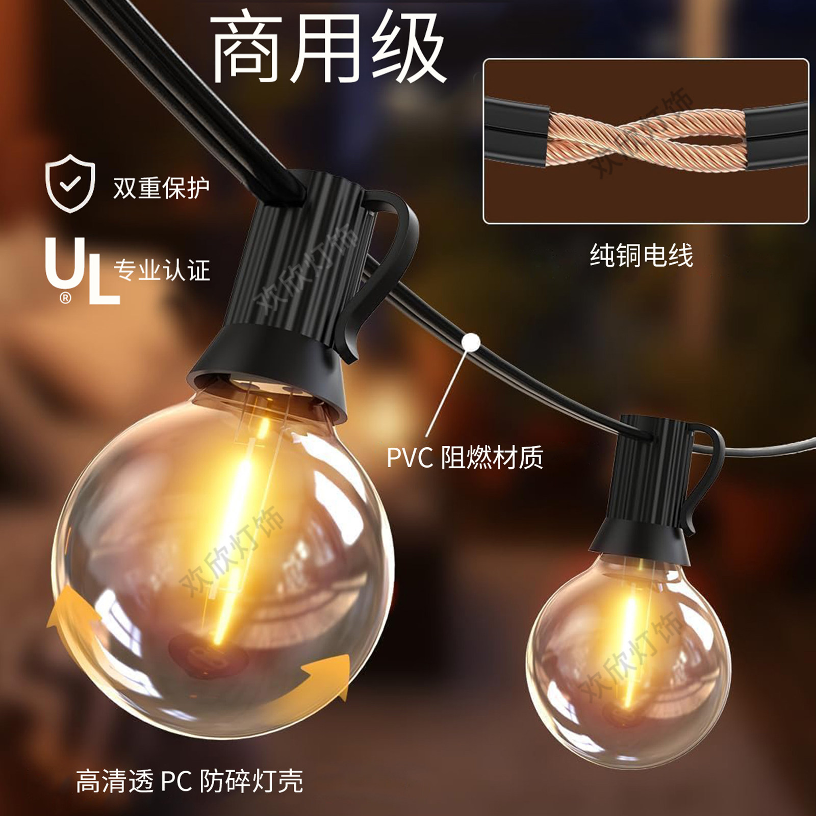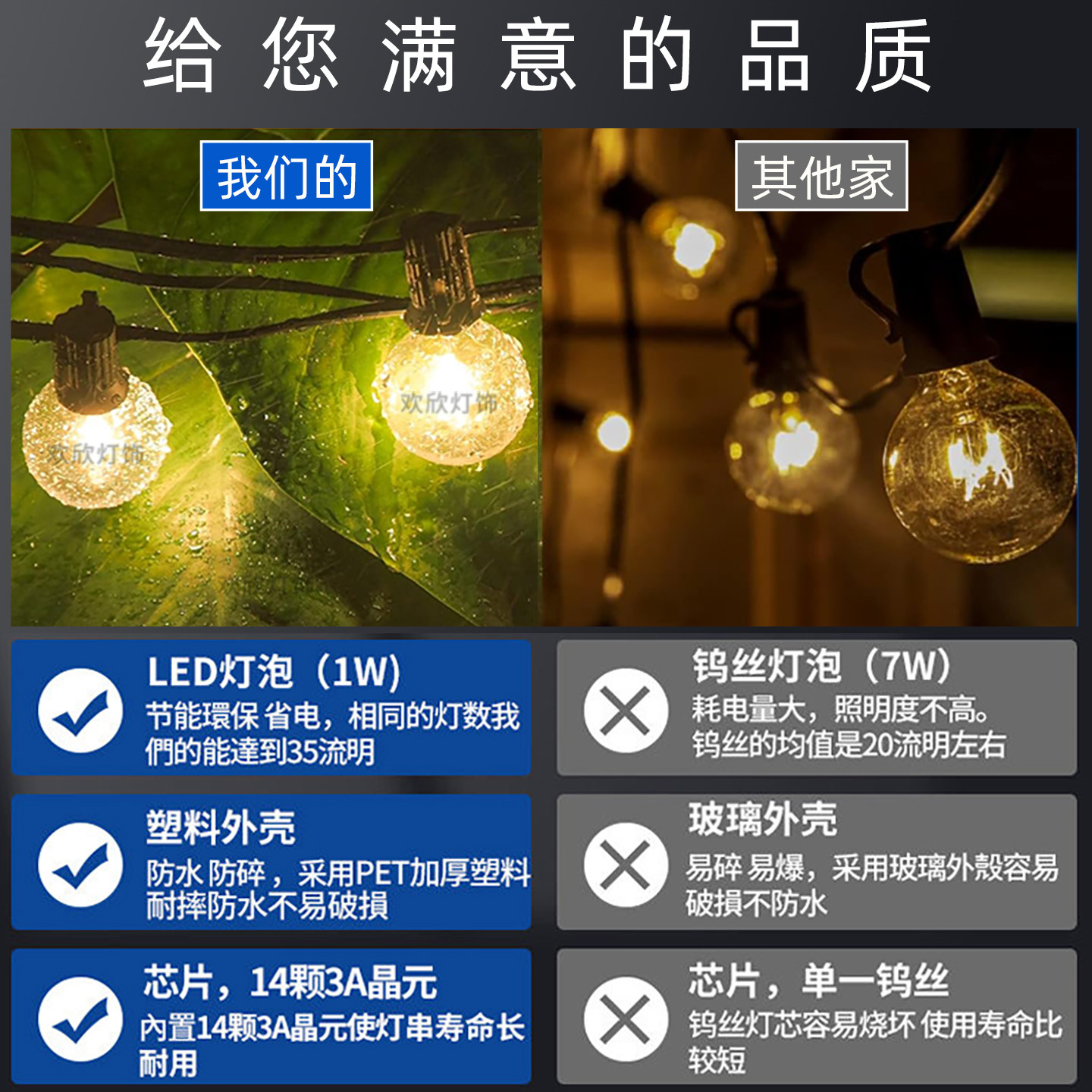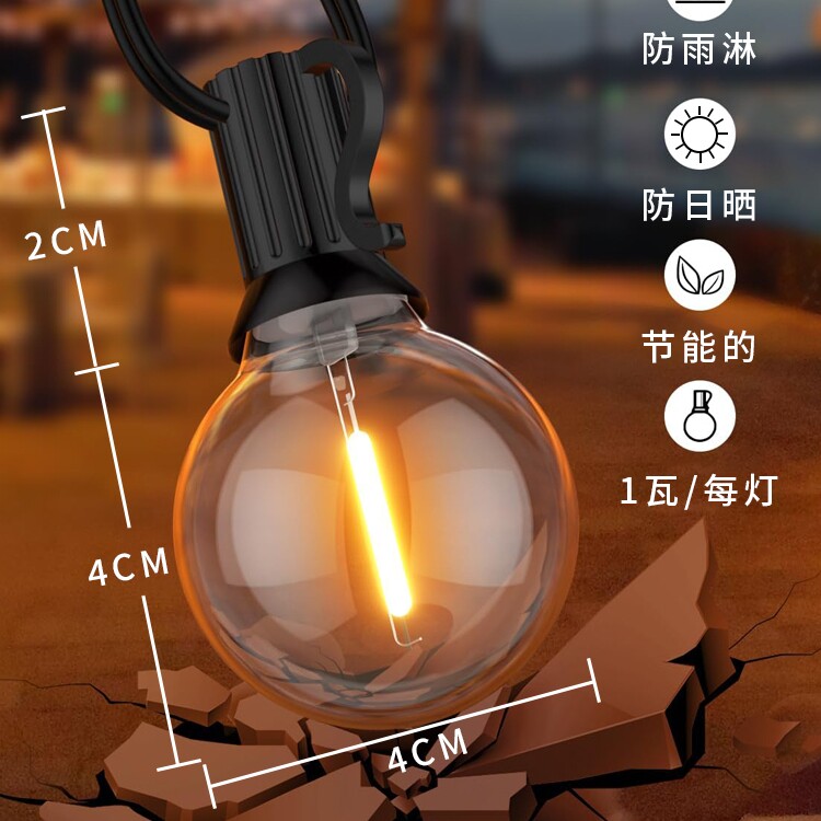 户外防水LED灯串圆球形插电可串联节庆庭院露营天幕氛围装饰串灯