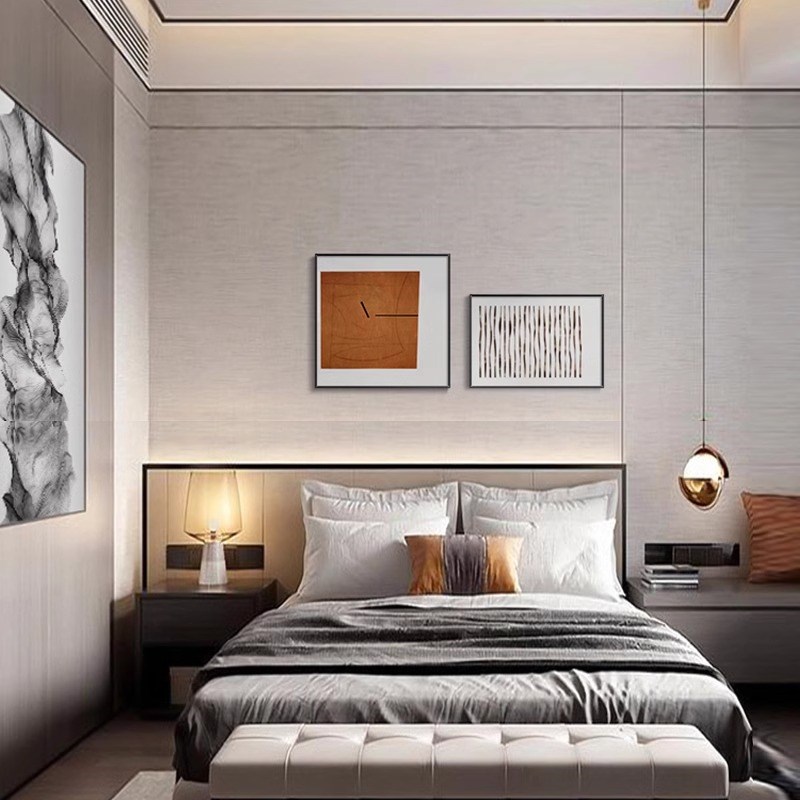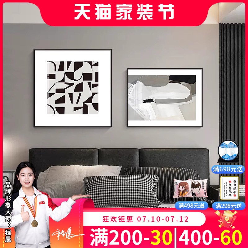 抽象艺术卧室床头装饰画现代简约主卧房间背景墙挂画高档双联壁画