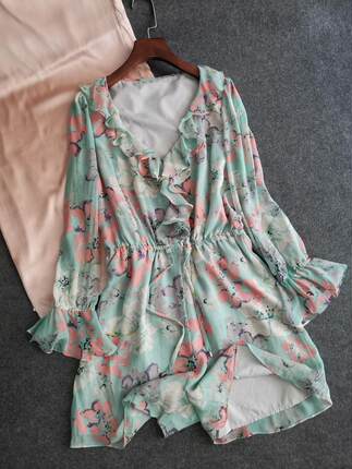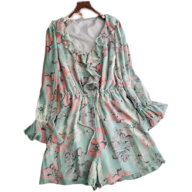 2020春季新品碎花木耳边女装真丝连体裤桑蚕丝春夏季时尚裤热裤潮