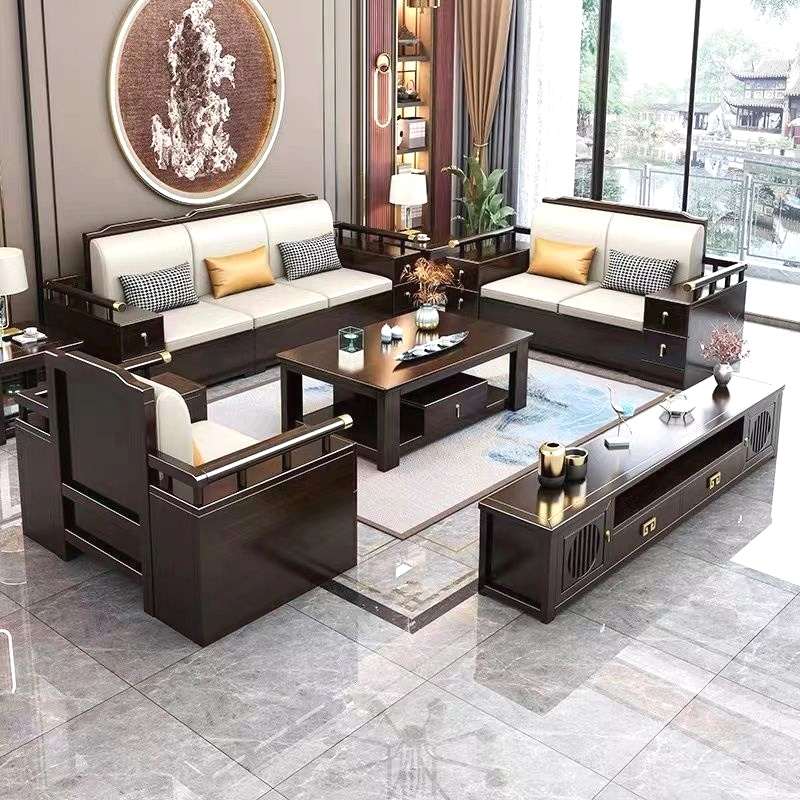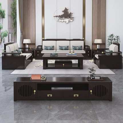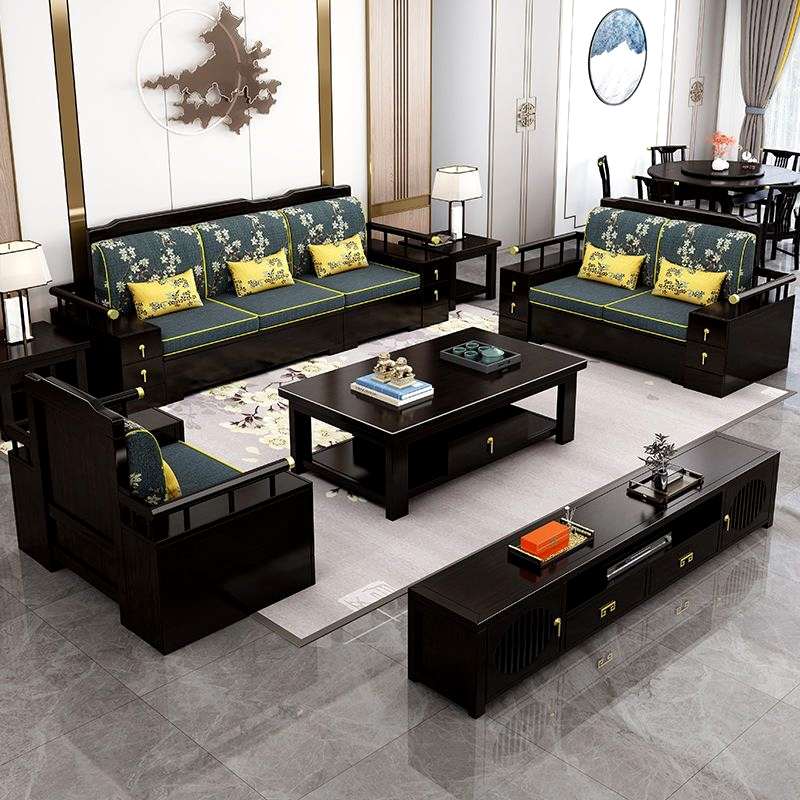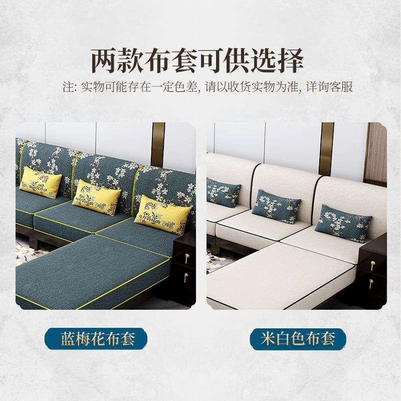 新中式全实木沙发组合冬夏两用转角贵妃实木储物客厅家具别墅家用