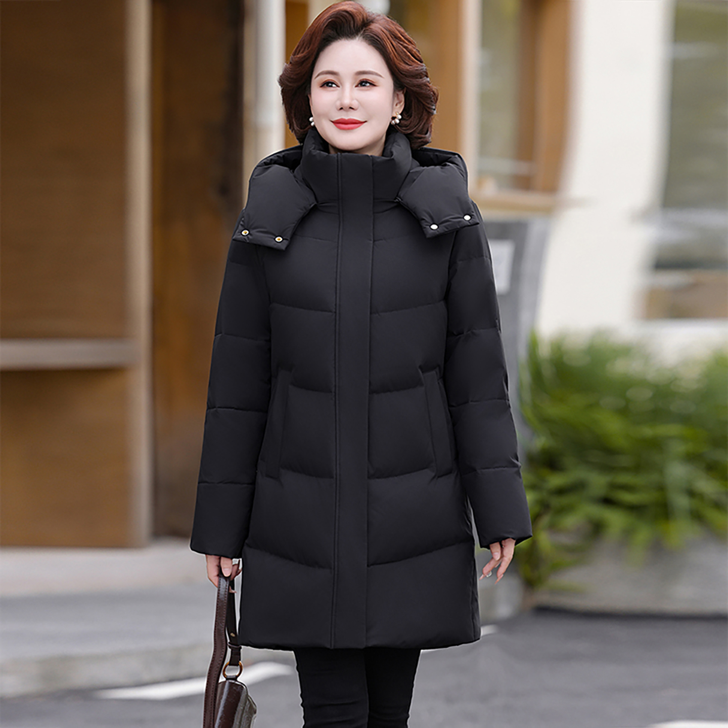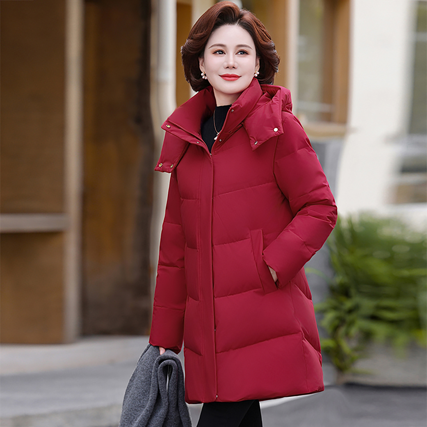 中老年女装冬装羽绒服中长款纯色妈妈装加厚保暖白鸭绒外套奶奶装