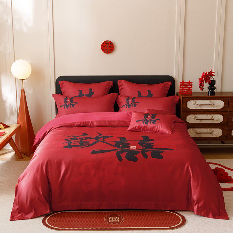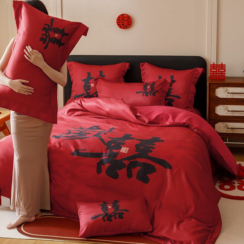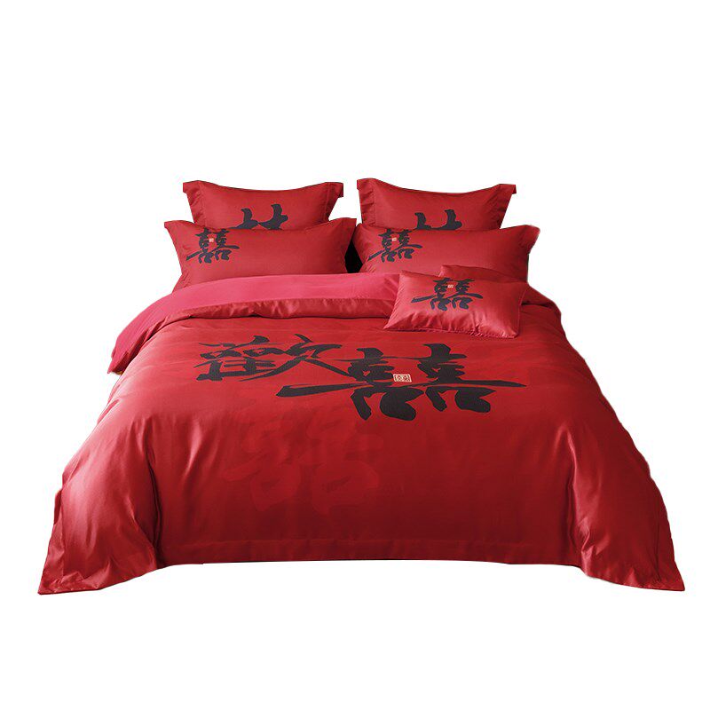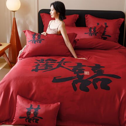 婚庆四件套红色结婚浪漫欢喜被套床单送新人O轻奢高级感婚床上用