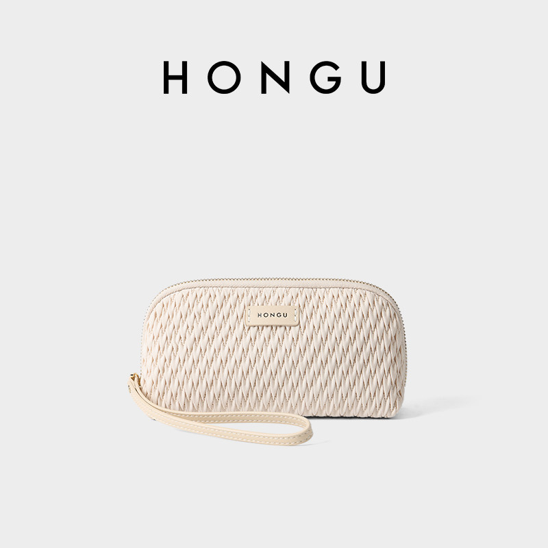 红谷女包百搭时尚褶皱纹理手拿包钱包女手腕包百搭休闲卡包零钱包